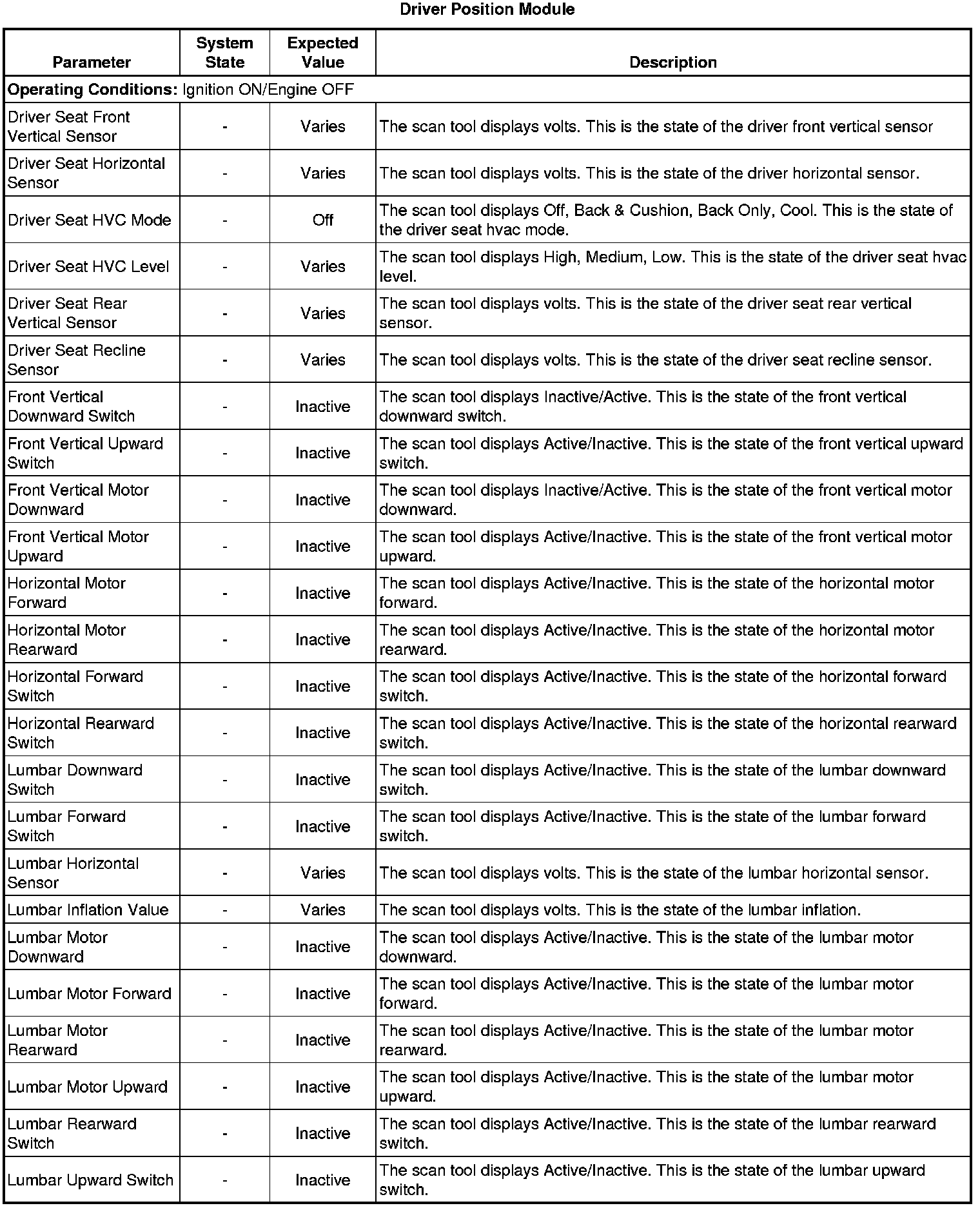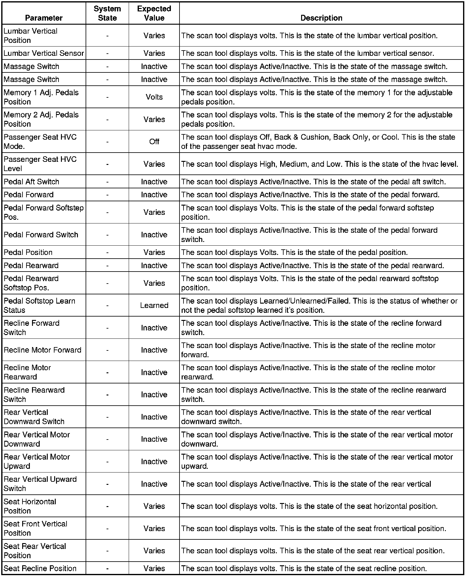 Driver Seat Adjuster Memory Module Scan Tool Information