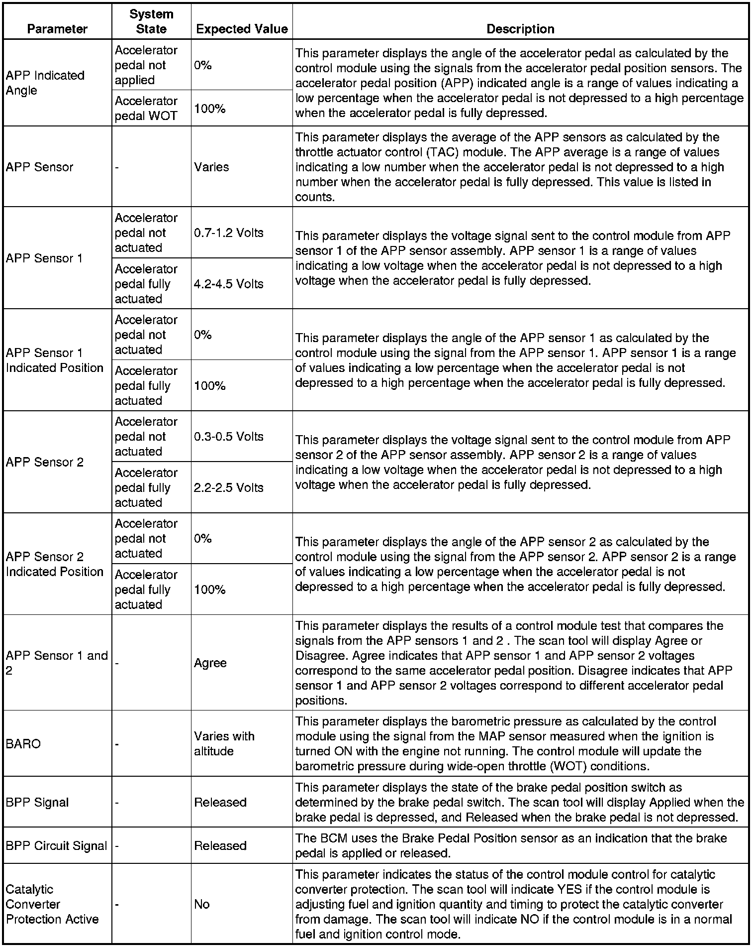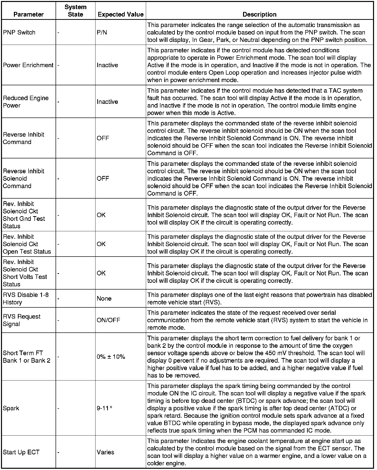 Only the parameters listed below are referenced in this service information for use in diagnosis.