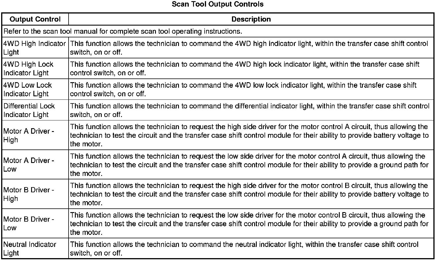 Transfer Case Shift Control Module Scan Tool Information