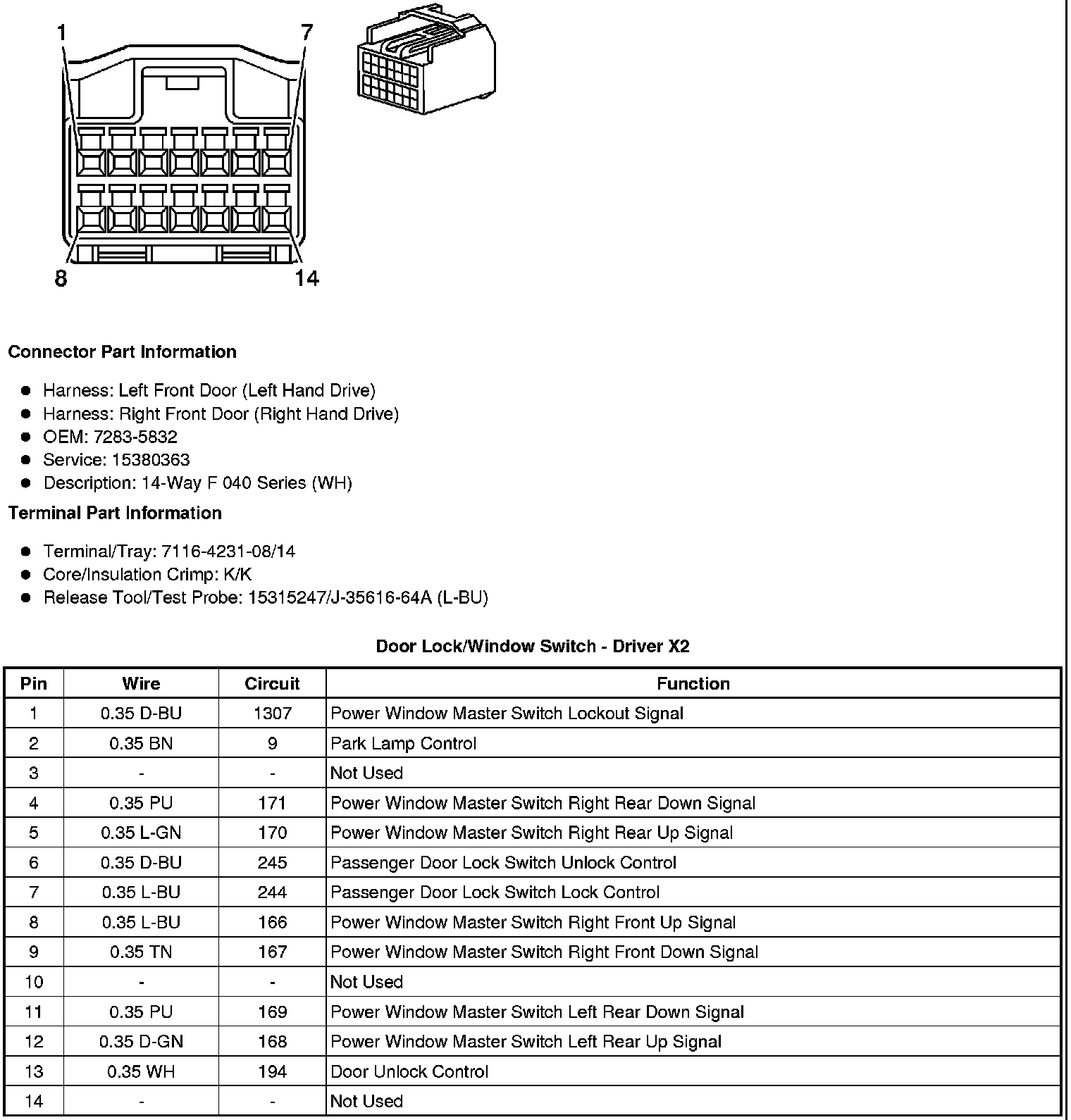 Door Lock/Window Switch - Driver X2