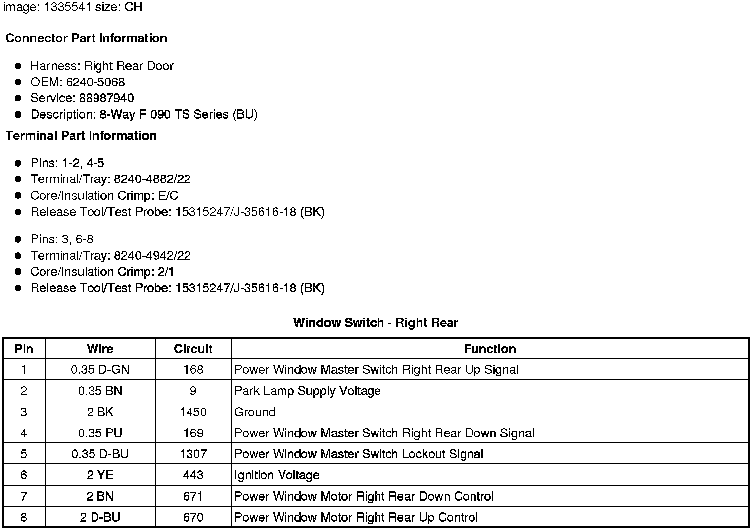 Window Switch - Right Rear