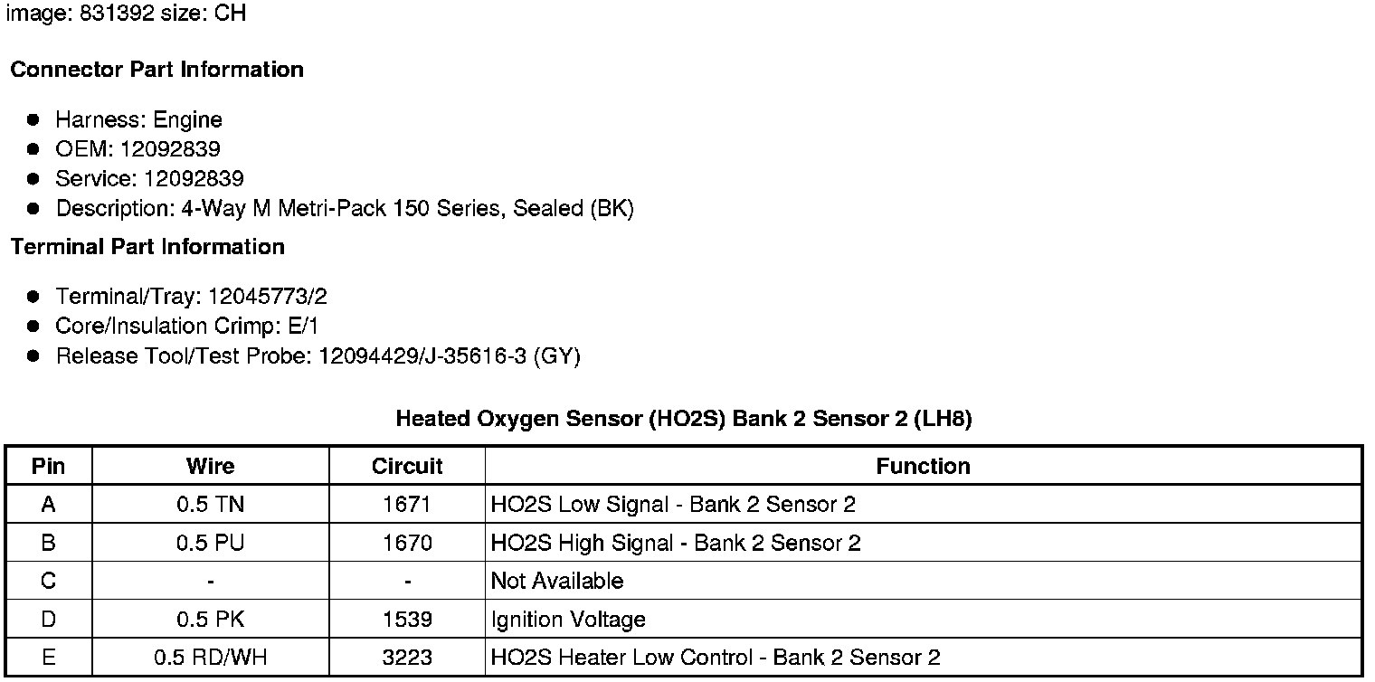 Heated Oxygen Sensor (HO2S) Bank 2 Sensor 1 (LH8)