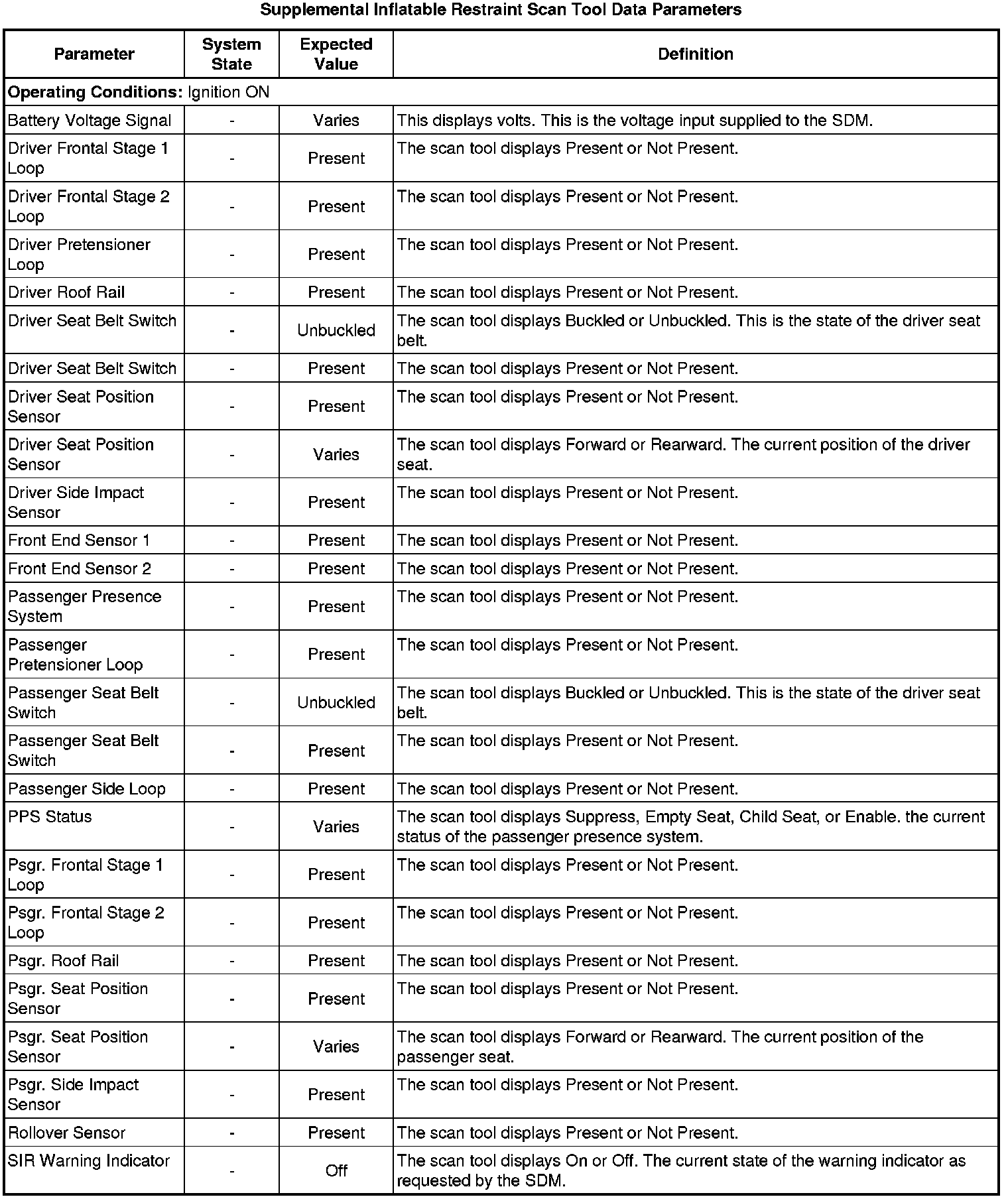 Inflatable Restraint Sensing and Diagnostic Module Scan Tool Information