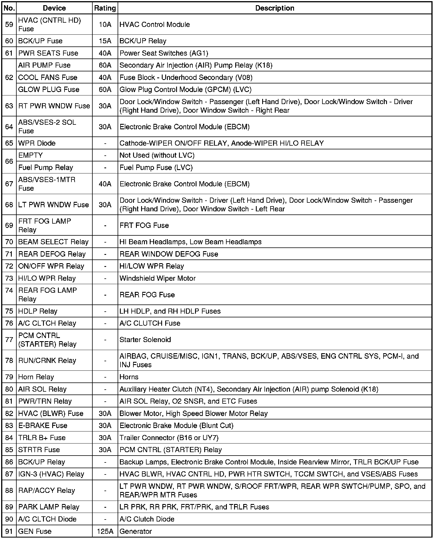 Fuse Block - Underhood, Label (without BRM)