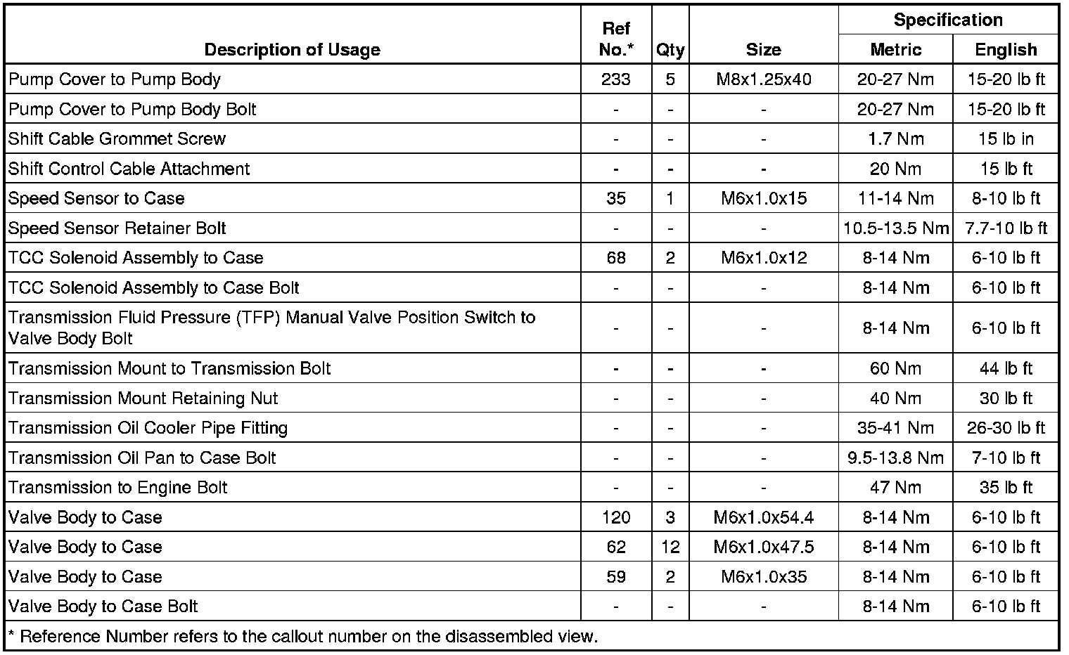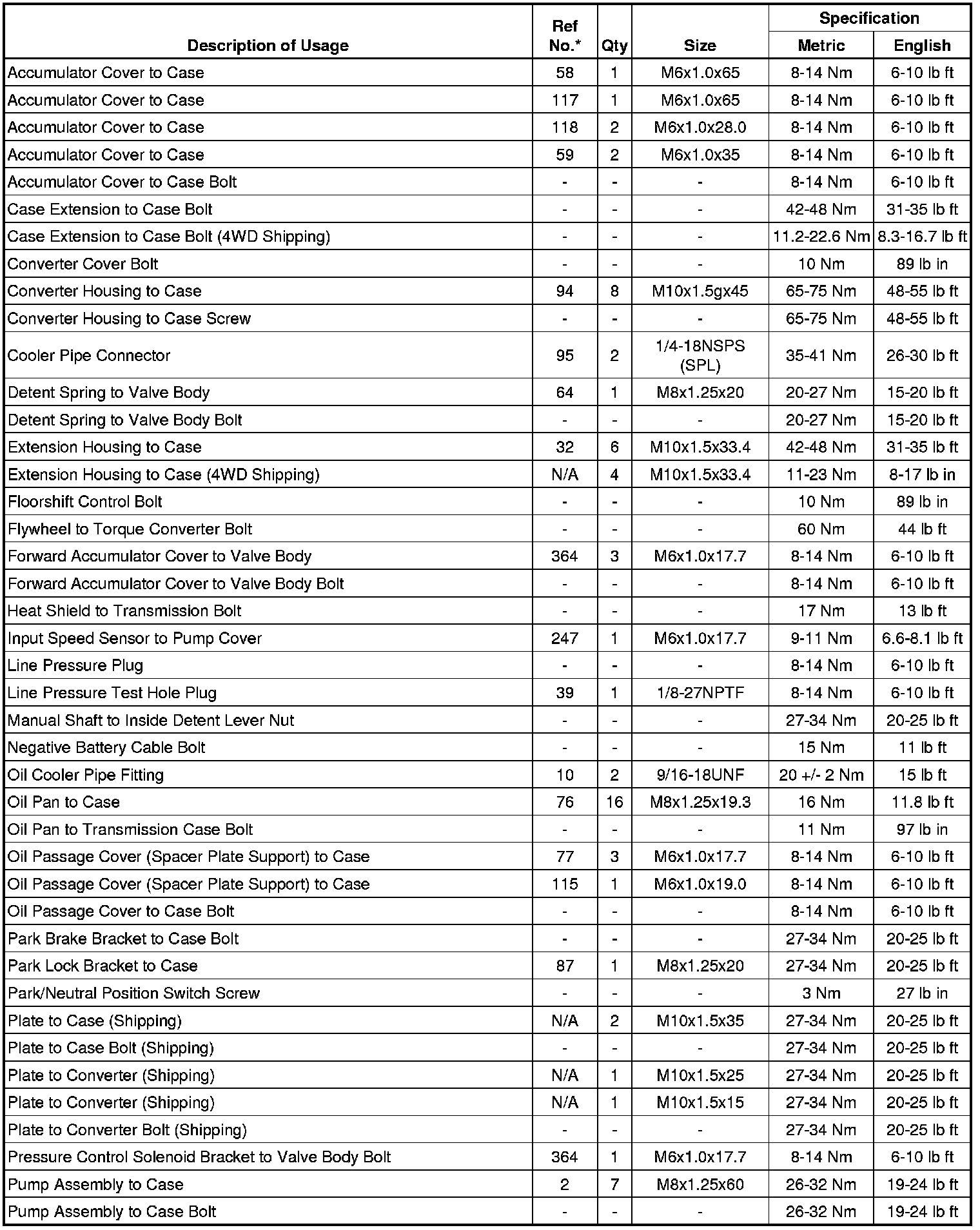 Fastener Tightening Specifications