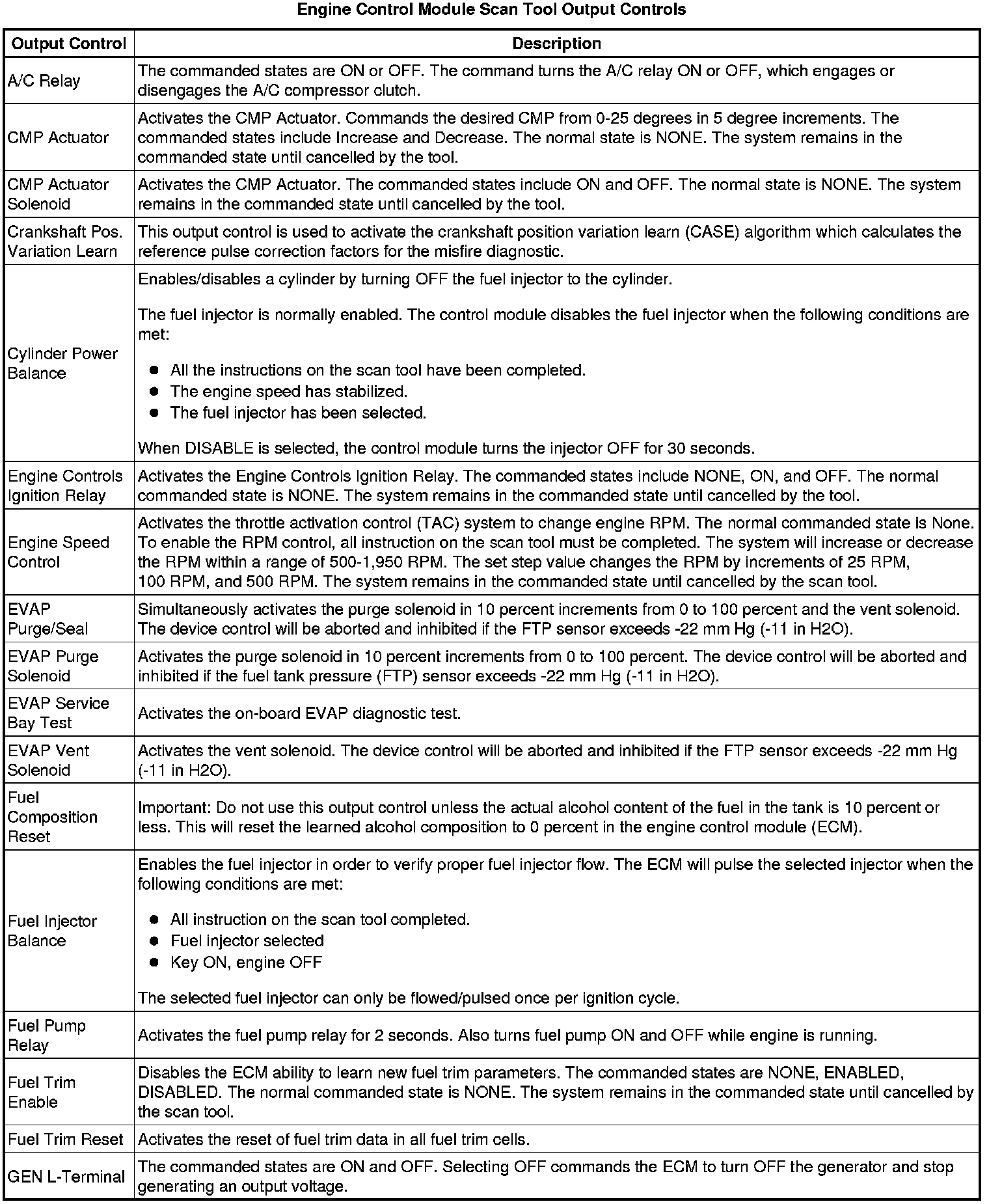 The Engine Control Module Scan Tool Data List contains all engine-related parameters that are available on the scan tool. The list is arranged in alphabetical order. A given parameter may appear in any one of the data lists, and in some cases may appear more than once, or in more than one data list in order to group certain related parameters together.