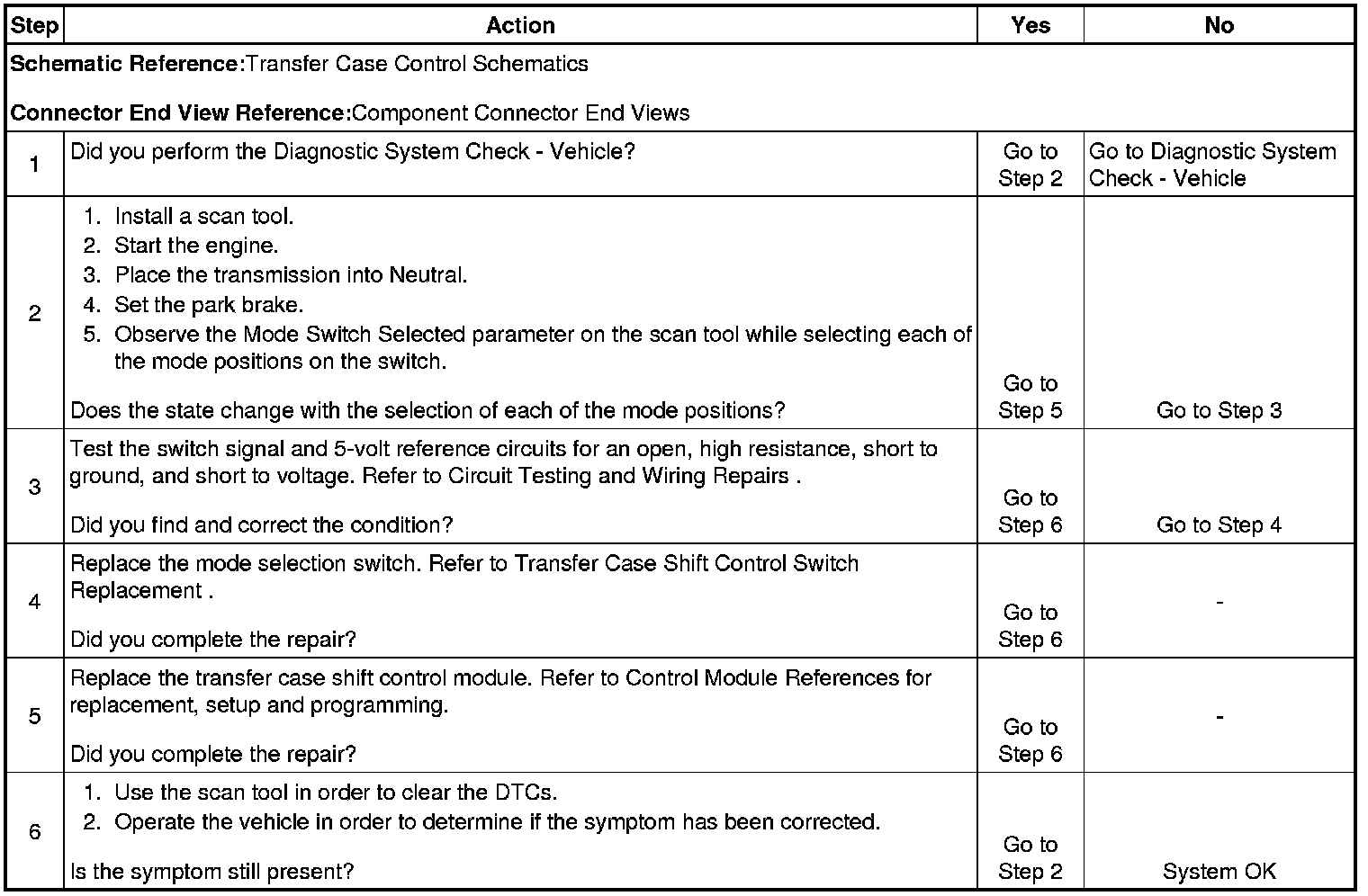 The transfer case shift control module constantly monitors this signal voltage to determine the condition of the mode switch circuit.