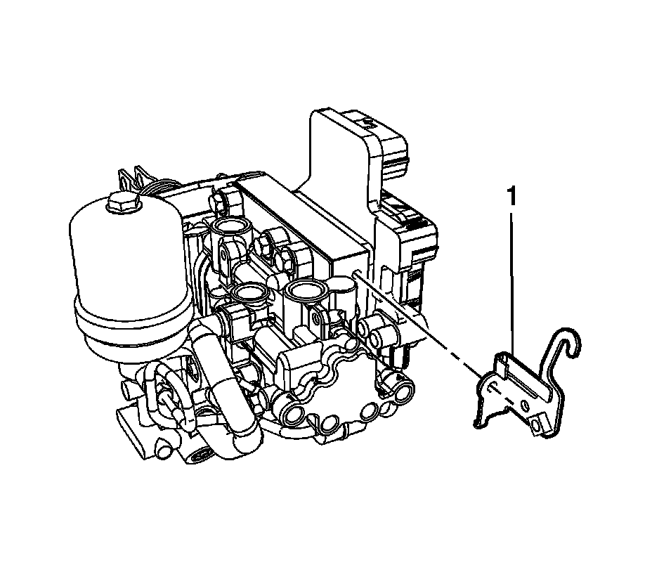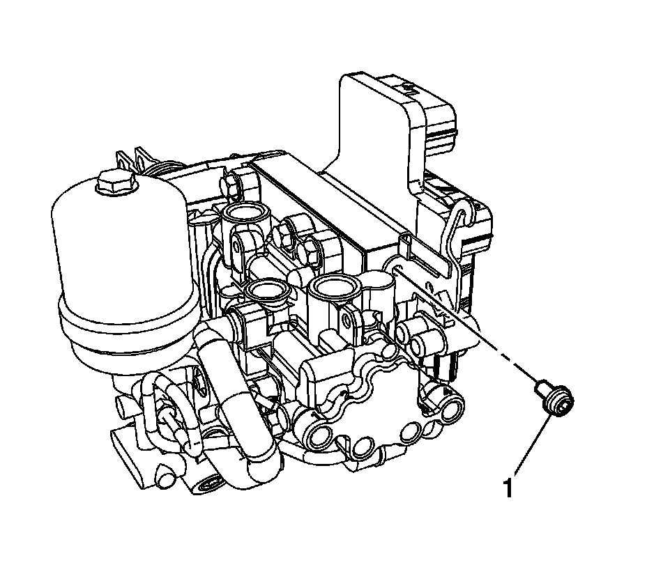 9. Remove the electronic brake control module (EBCM) with BPMV assembly bolts (1).