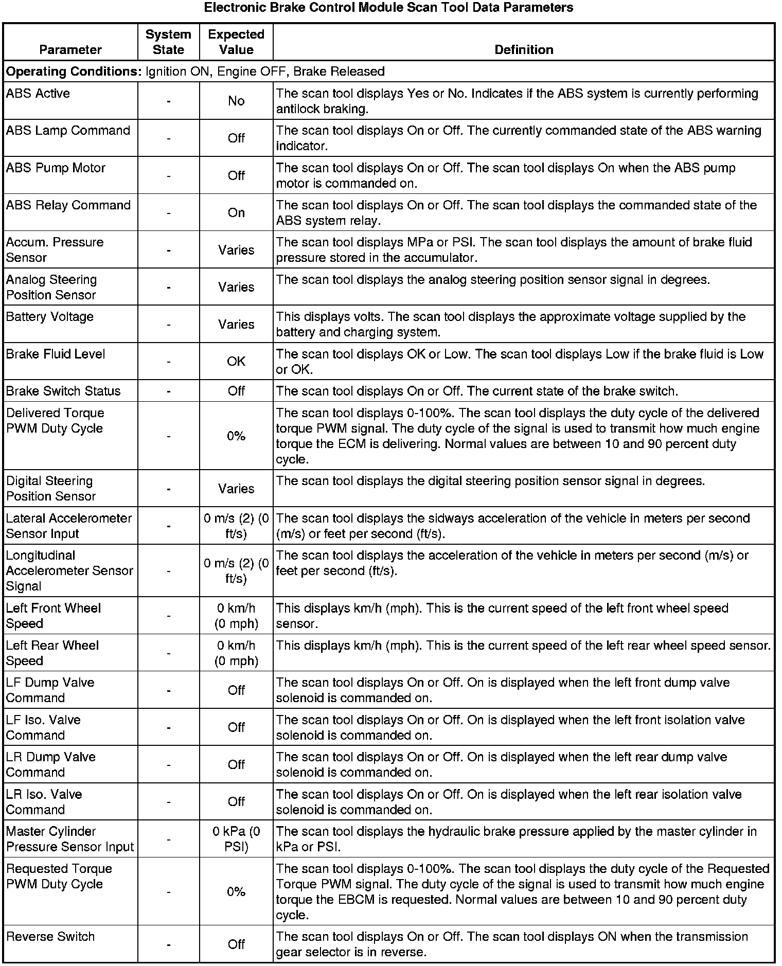 Electronic Brake Control Module Scan Tool Information