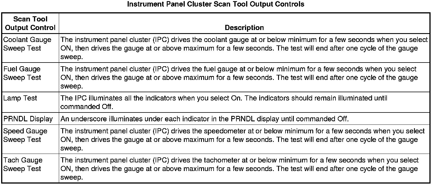 Instrument Cluster Scan Tool Information