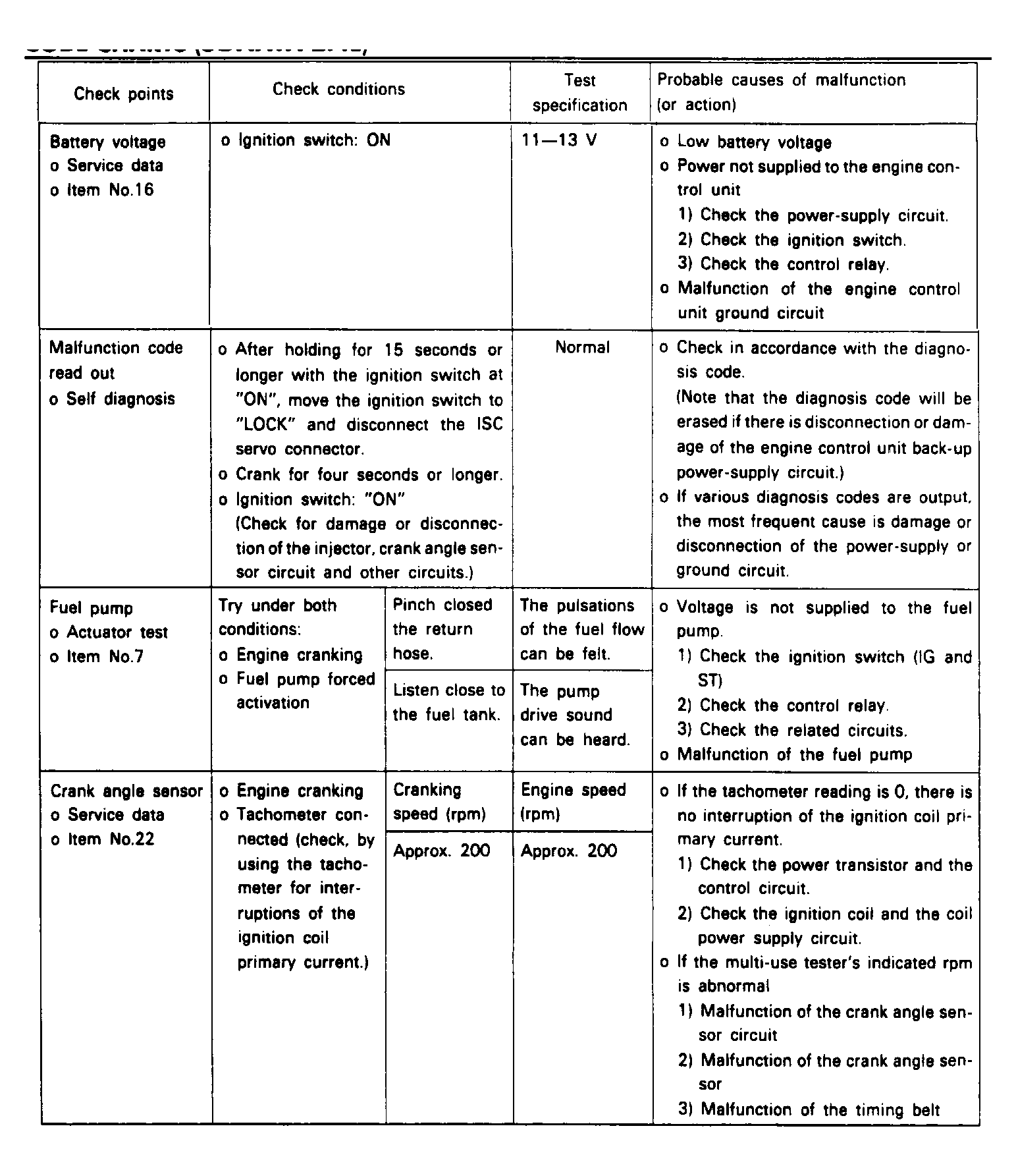 - If using scan tool, and malfunction indicator light comes on while various checks are being made, check self-diagnostic output.