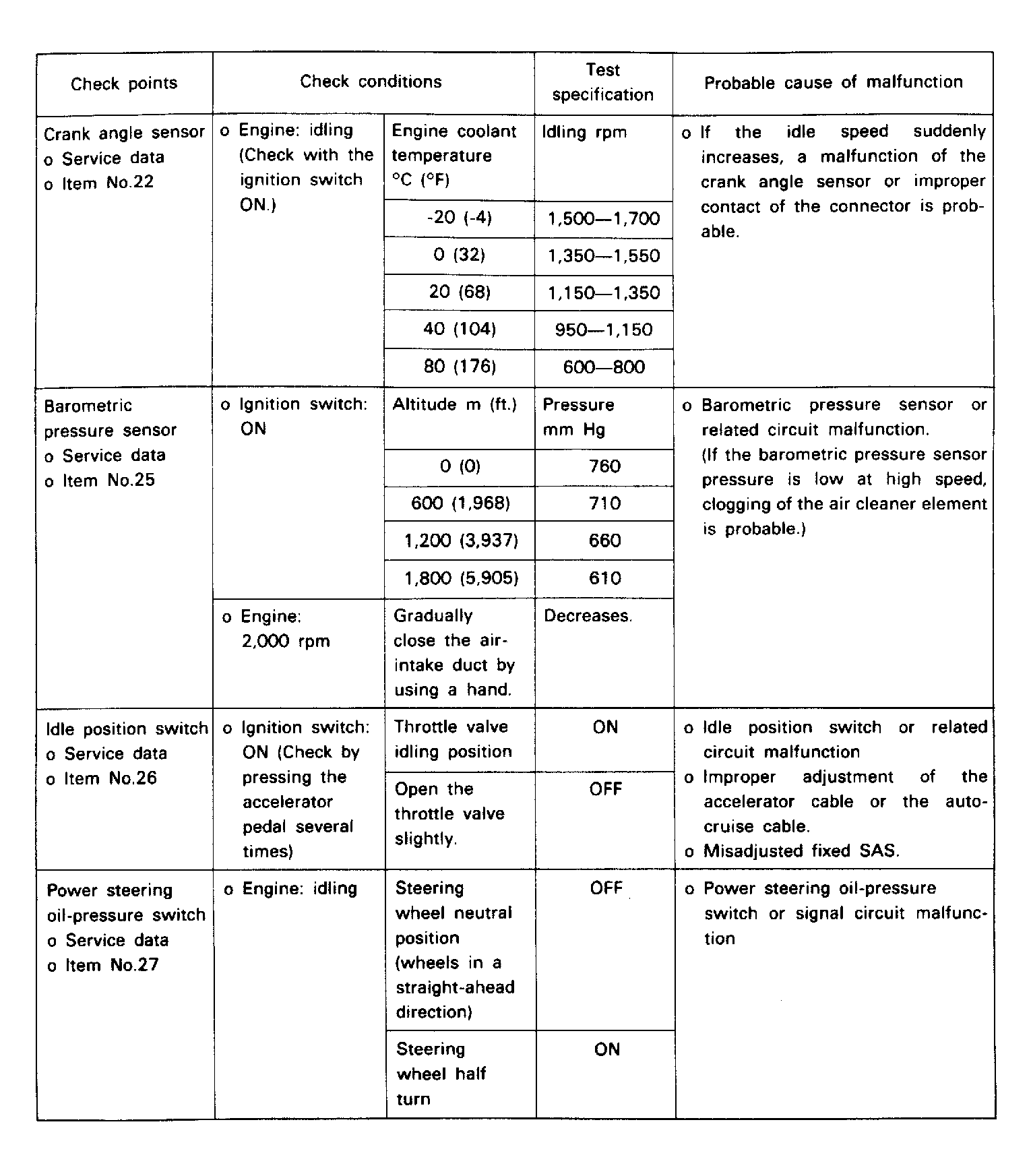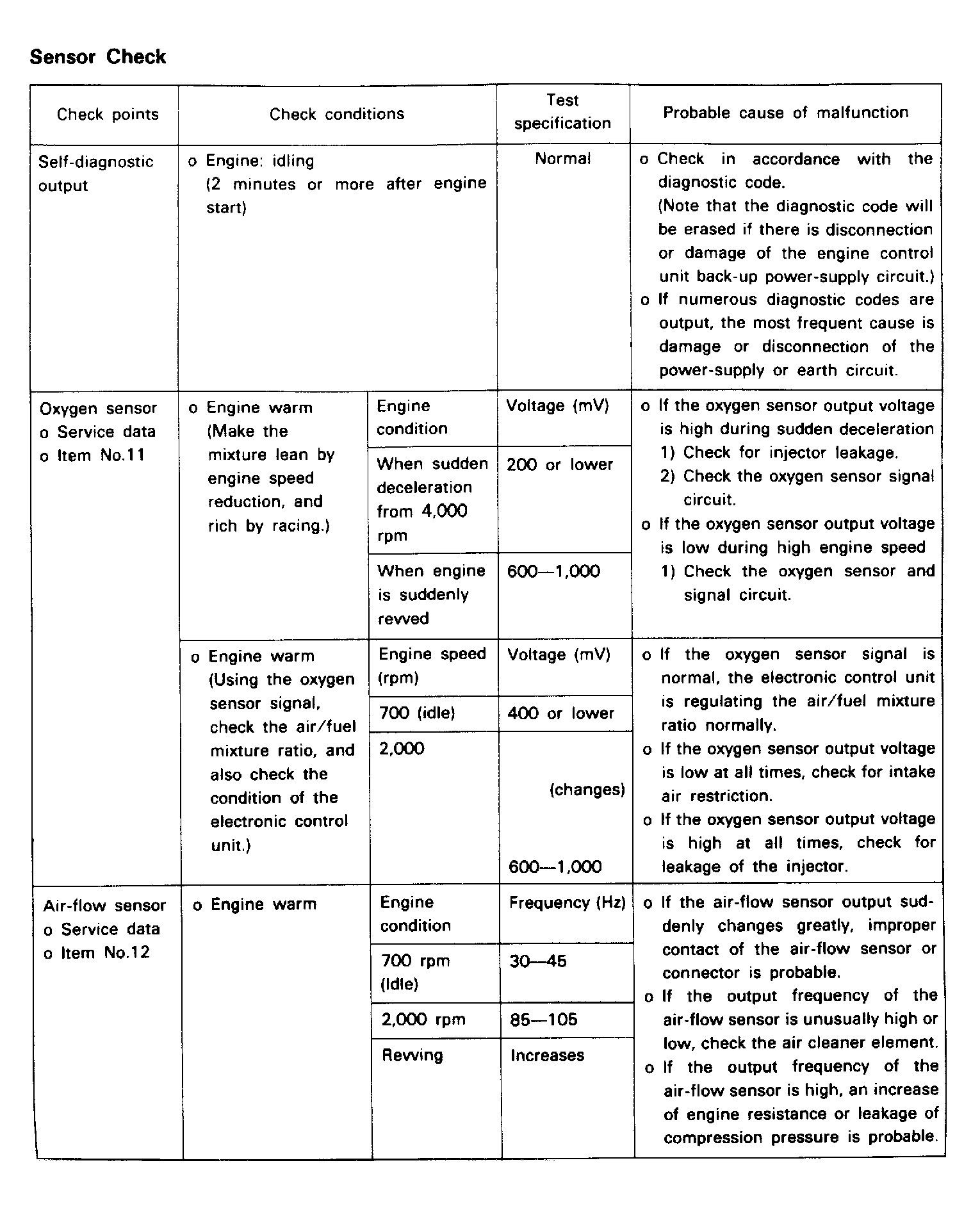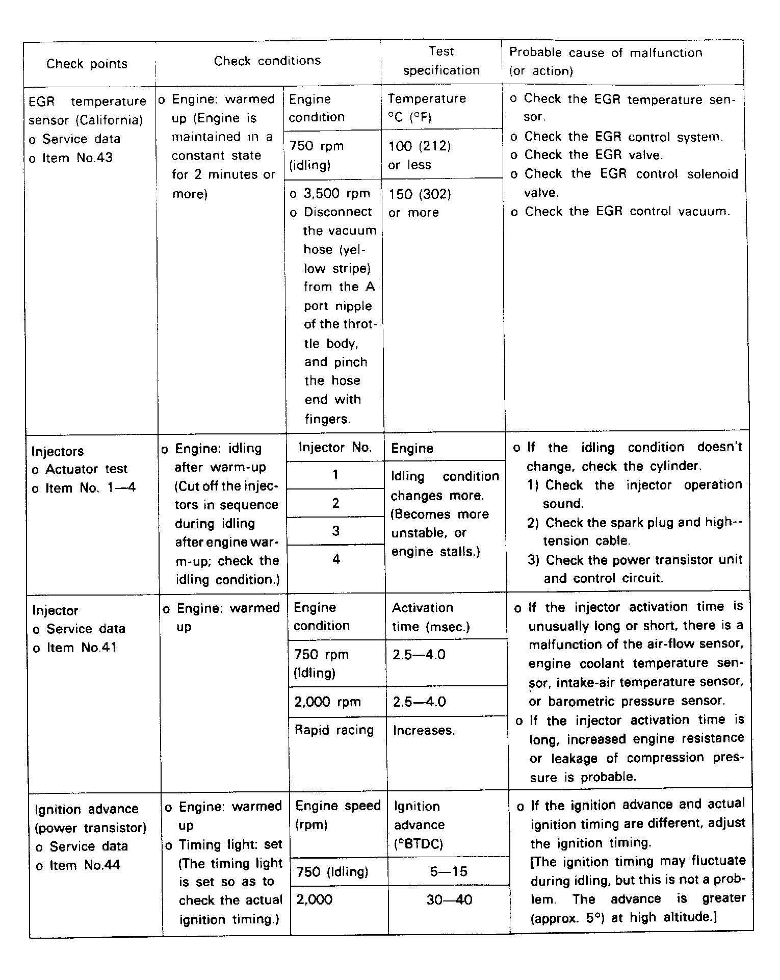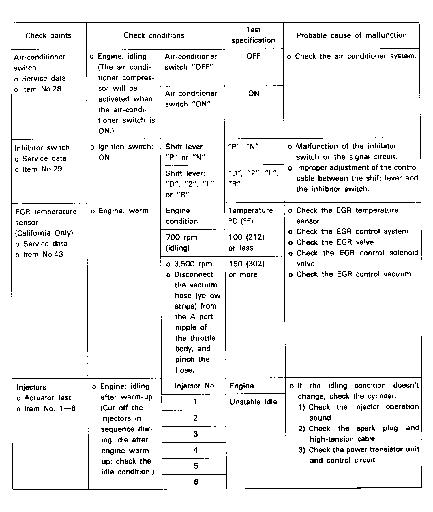 Fuel Pres., Injectors, Vacuum Leak, O2 Sensor |