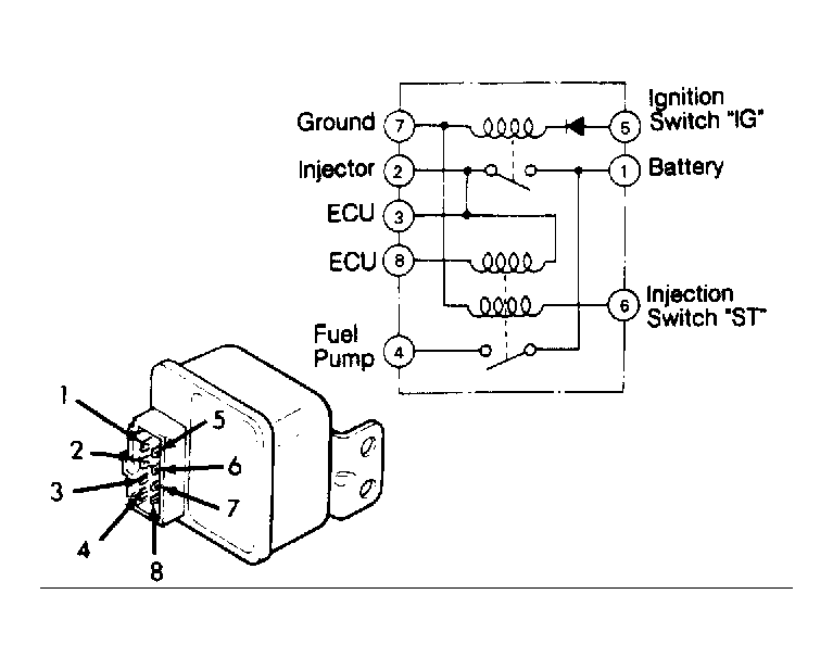 - Disconnect electrical connector. Using an ohmmeter, check continuity between relay terminals No. 3 and 4, and terminals No. 1 and 6. See Fig 1