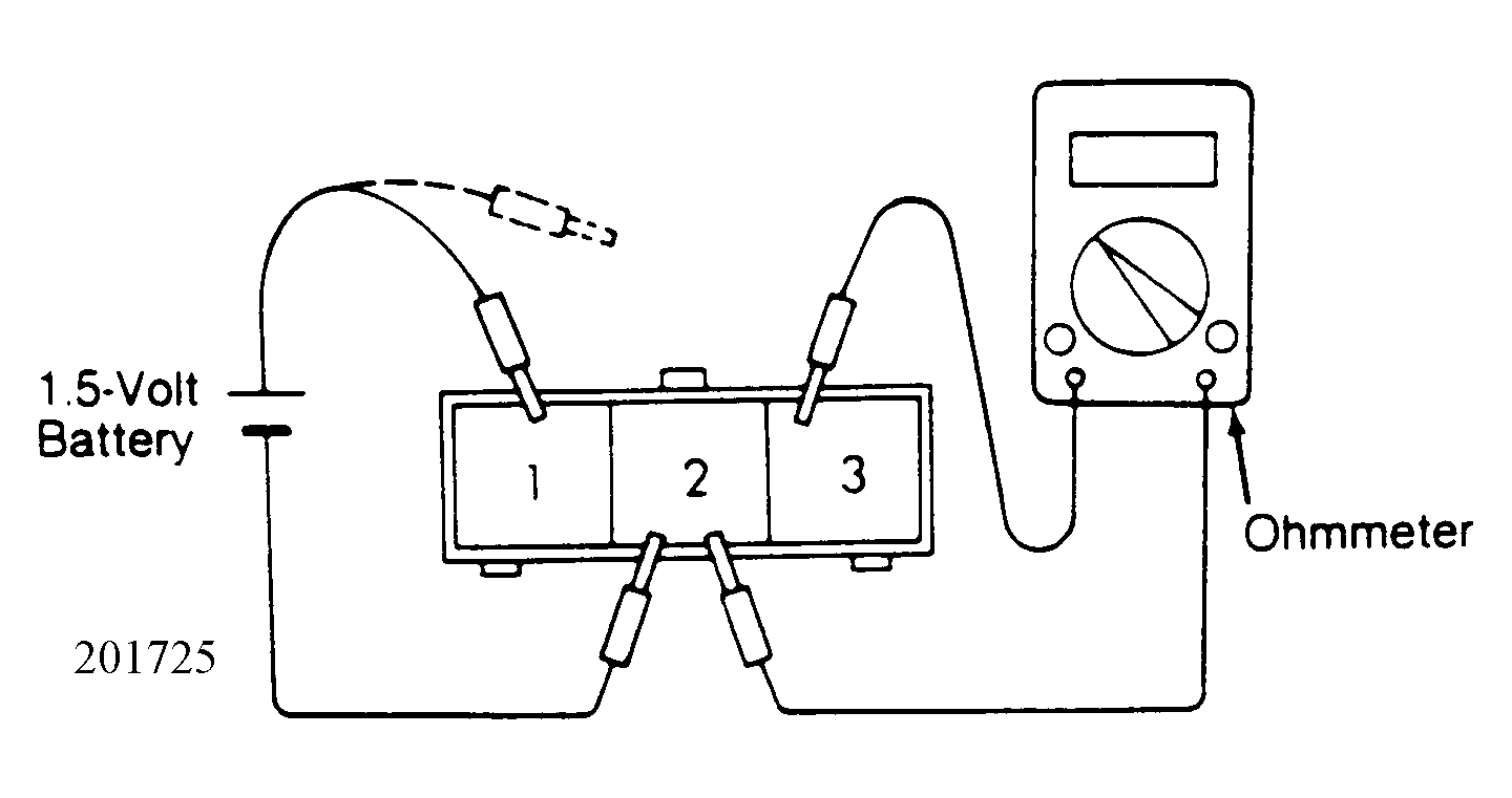 2. Check continuity between terminals No. 2 and 3 with terminal No. 1 disconnected from battery, no continuity should be present. With terminal No. 1 connected to battery, there should be continuity between terminals No. 2 and 3.