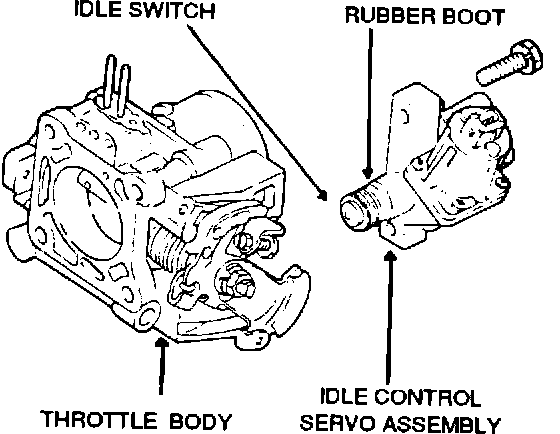 2. Remove the Idle Speed Control Ass'y plunger rubber boot and spray contact cleaner into the Idle Switch at the end of the ISC plunger.