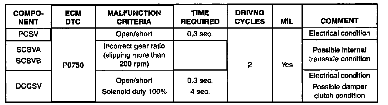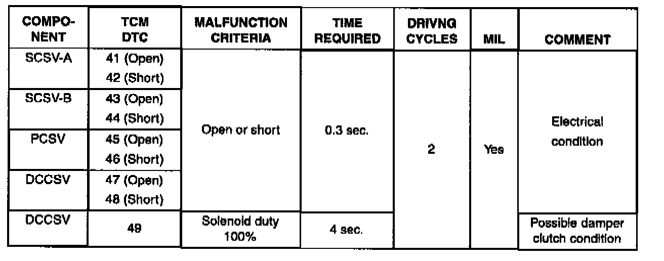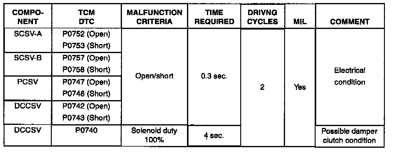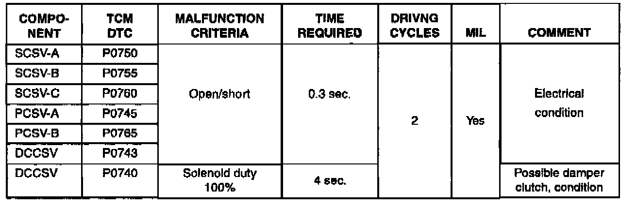 For your reference, the logic the TCM uses to set solenoid codes are listed.