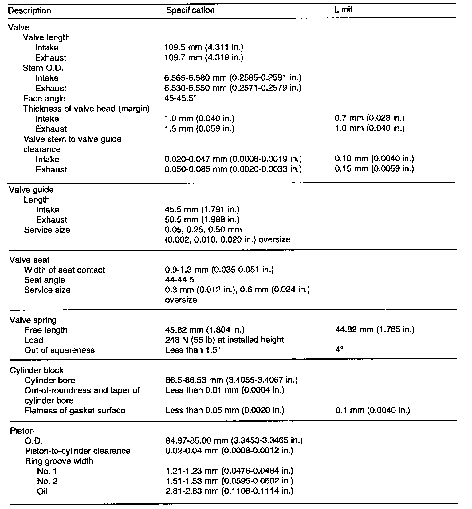 GENERAL SPECIFICATIONS