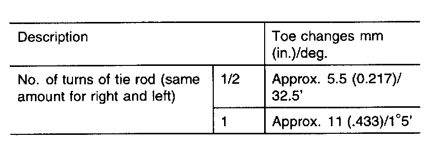 1. Toe-in adjustment should be made by turning the right and left tie rods the same amount.