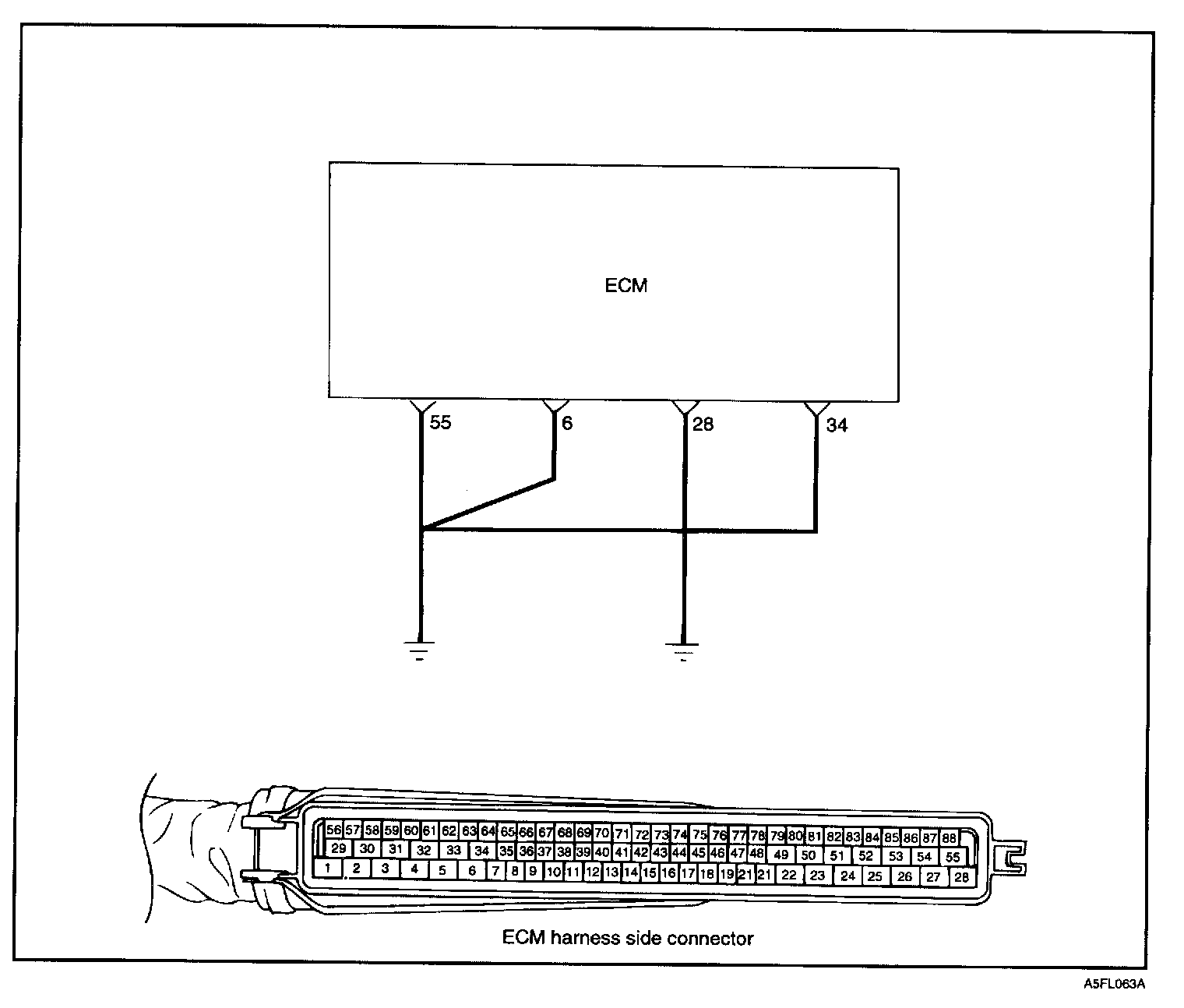 - If the ground wire of the ECM is not connected securely to ground, the ECM will not operate correctly.