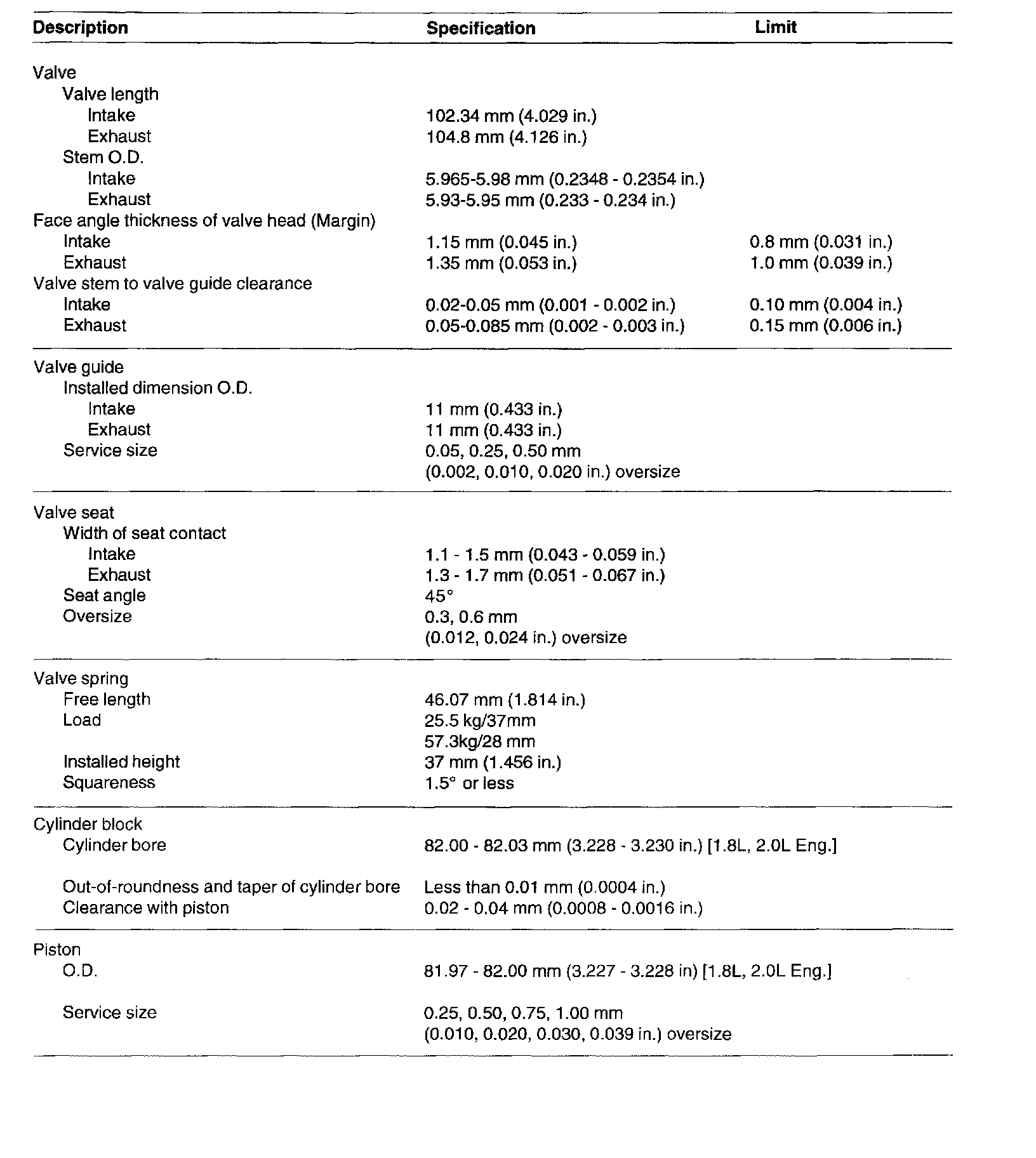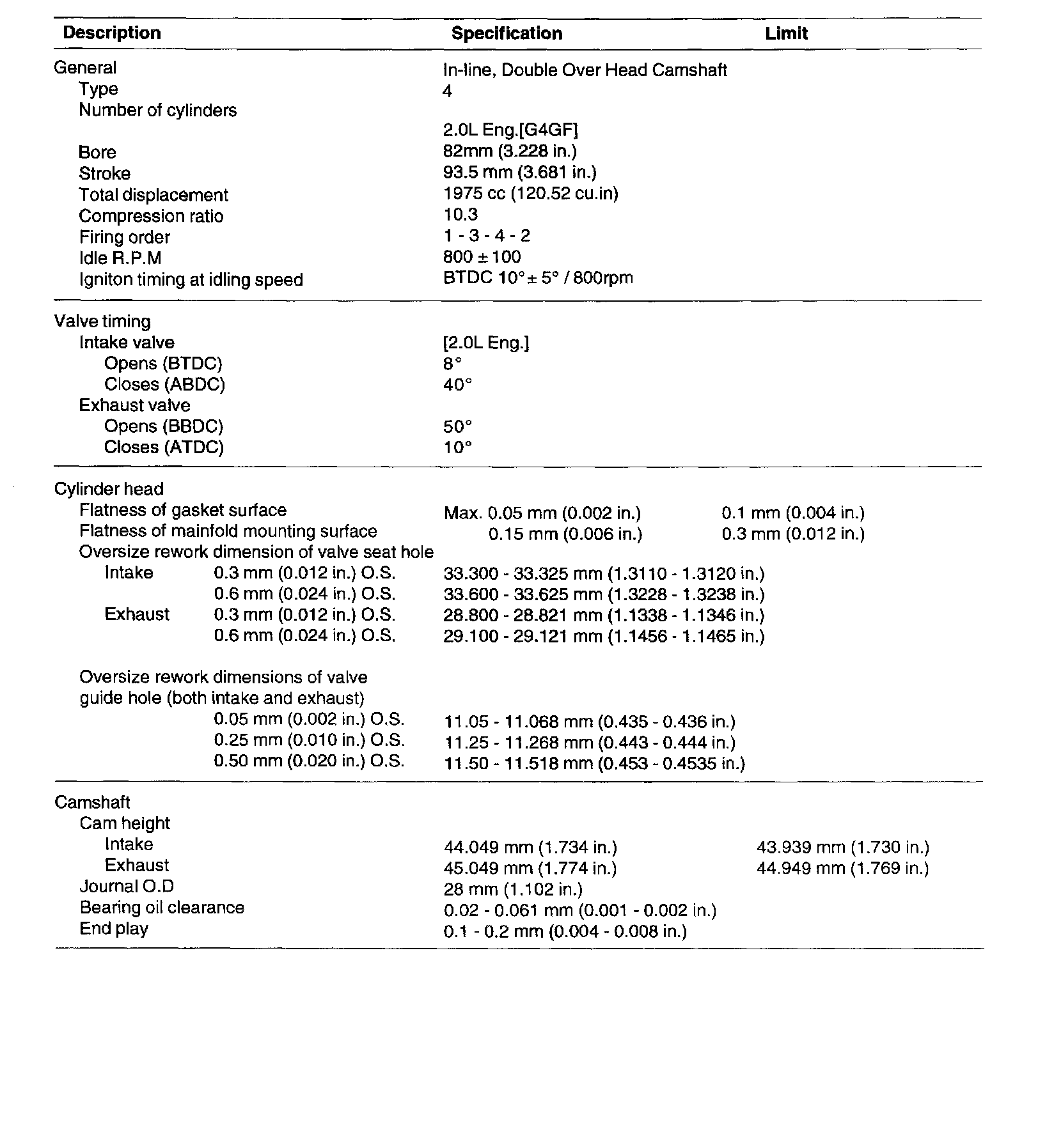 Home >> Hyundai >> 2000 >> Tiburon L4-2.0L >> Repair and Diagnosis >> Specifications >> Mechanical Specifications >> Engine >> Cylinder Block Assembly >> System Specifications >> Cylinder Block Specifications