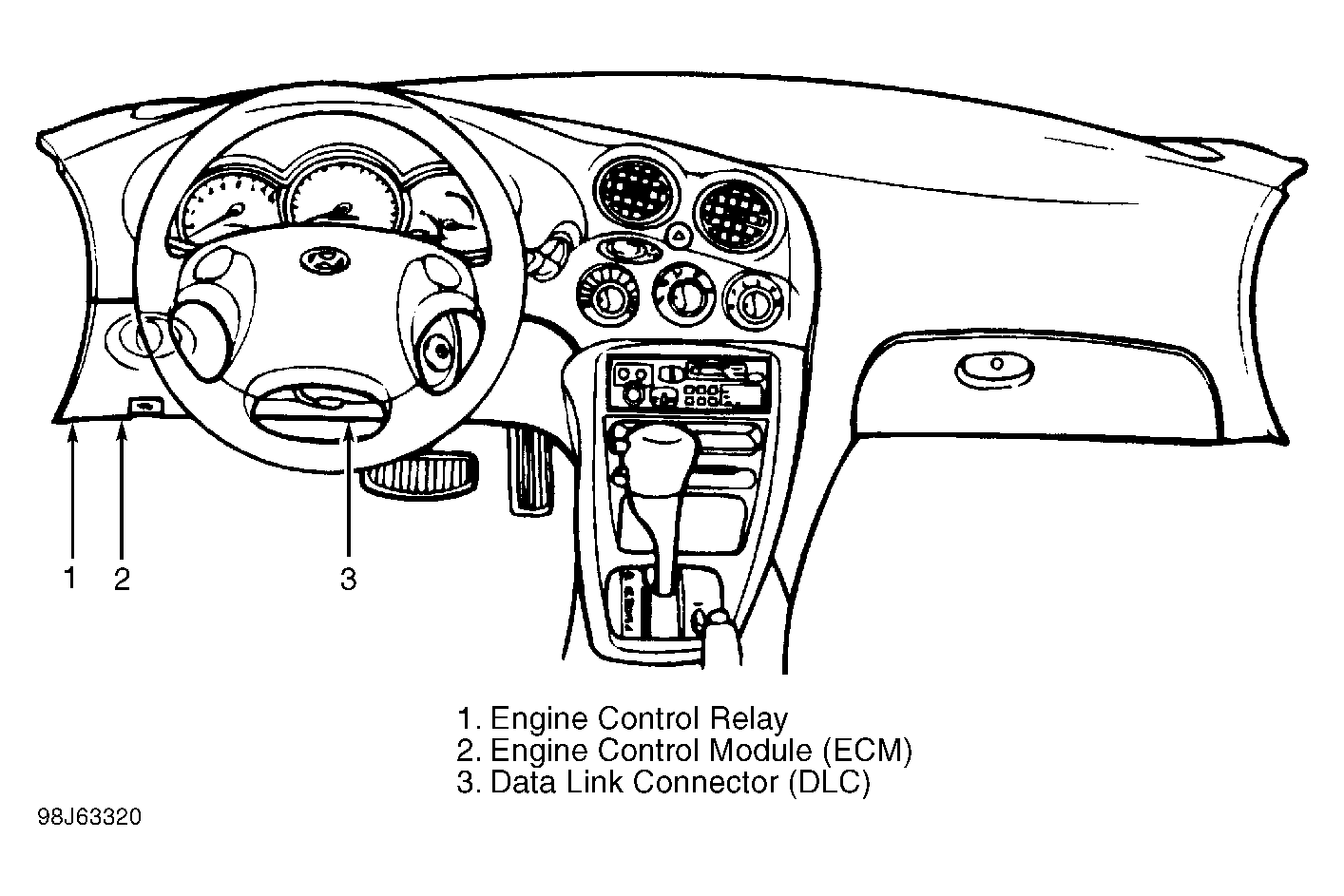 | Engine Control Module (ECM) | Behind left side of dash. See Figure . |