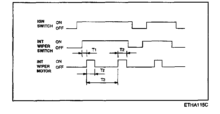 T2: 0.6 - 0.7 sec. (Time of wiper motor 1 rotation)
