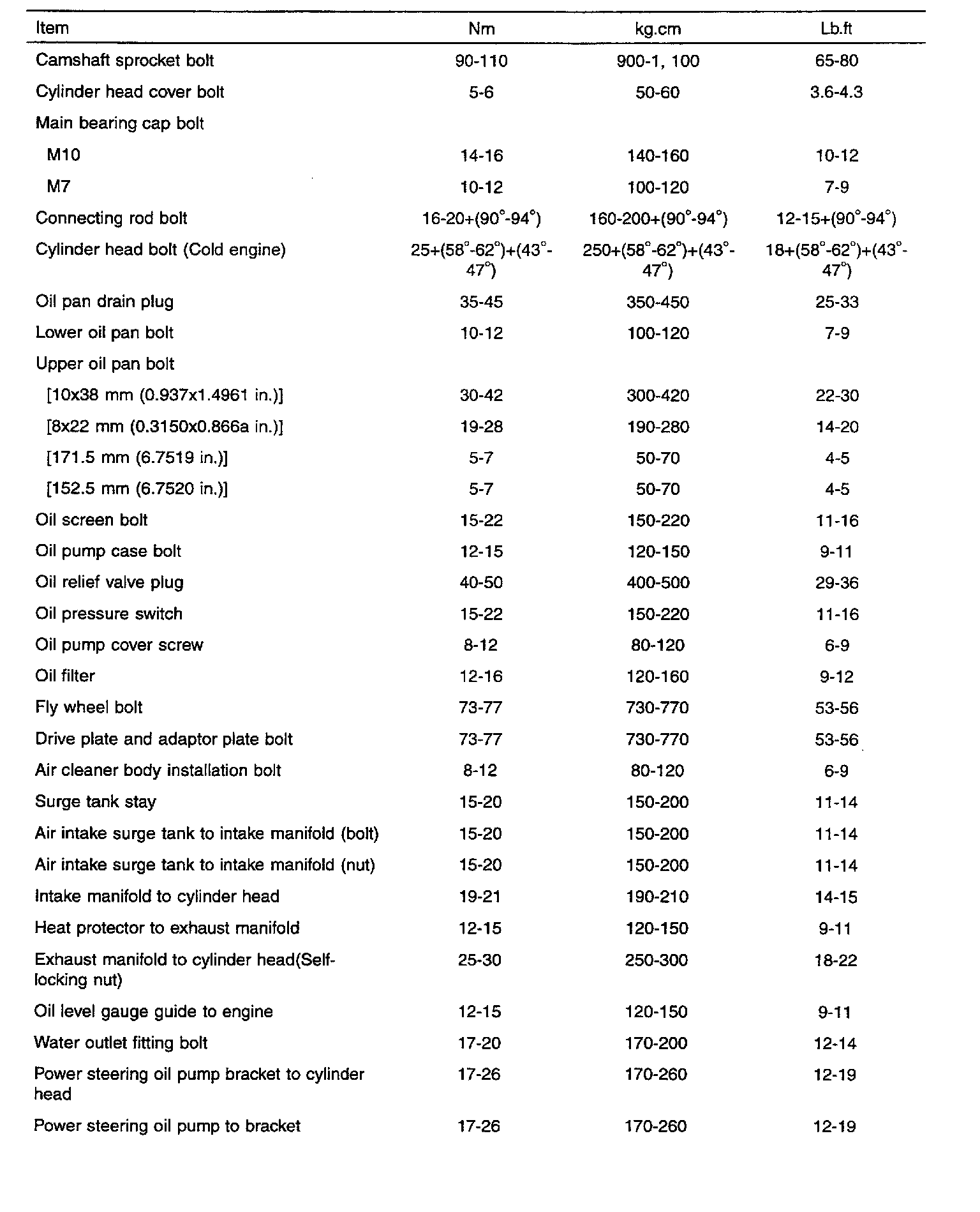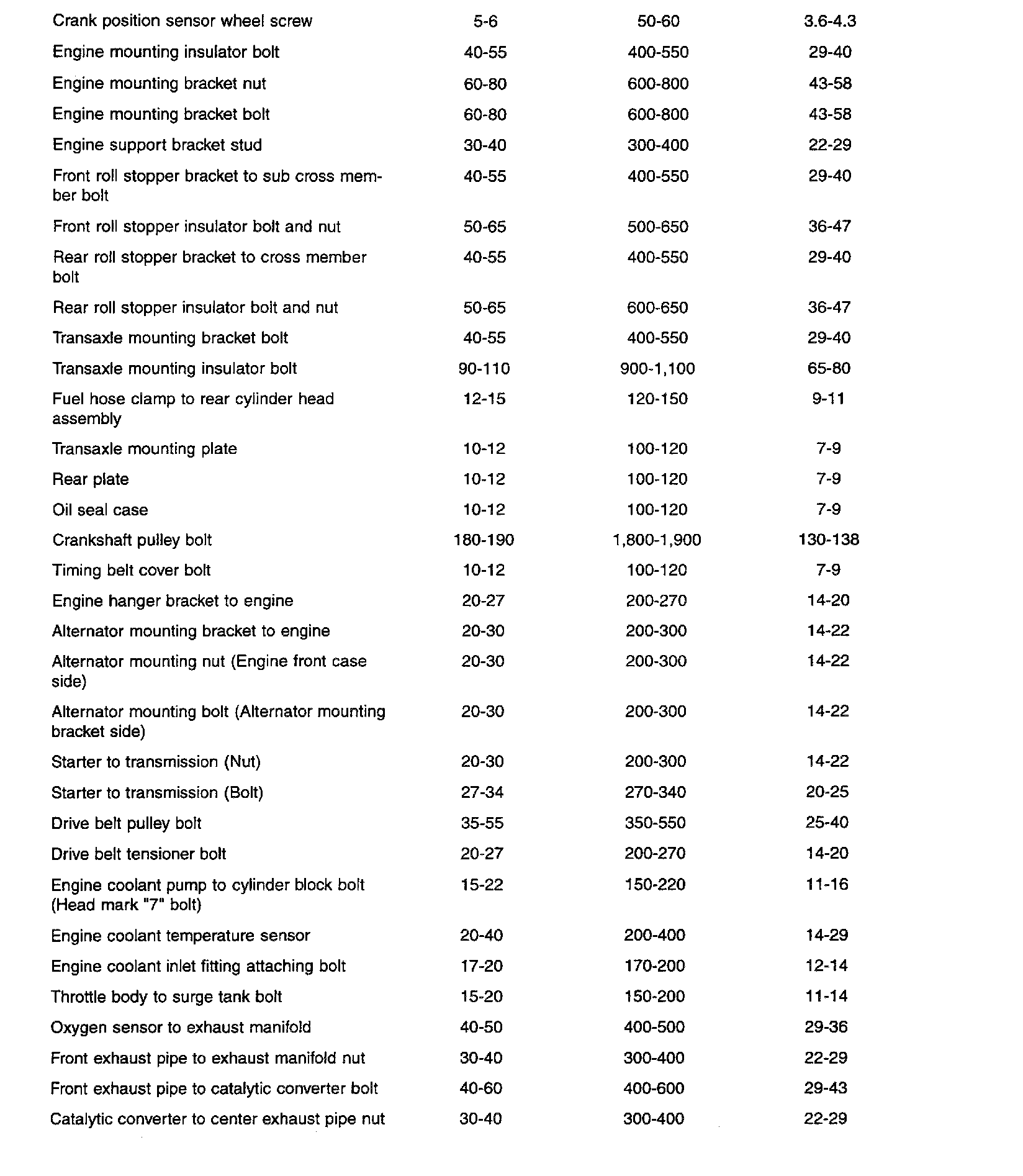 General Torque Specifications