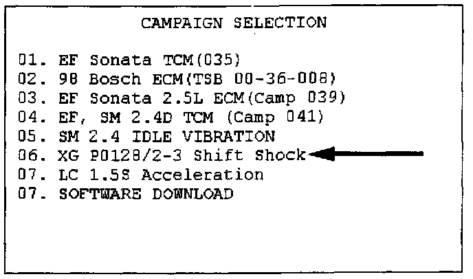 Home >> Hyundai >> 2001 >> XG 300 V6-3.0L >> Repair and Diagnosis >> Powertrain Management >> Computers and Control Systems >> Engine Control Module >> Technical Service Bulletins >> All Technical Service Bulletins >> PCM - Driveability/Poor Shift Quality >> Automatic Reprogramming Procedure