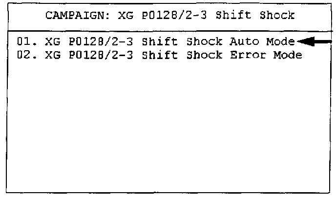 10. Select option "01. XG P0128/2-3 Shift Shock Auto Mode".