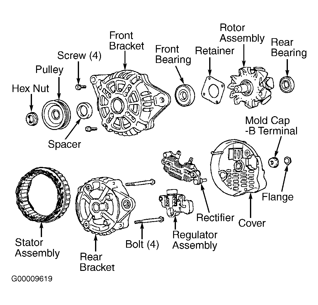 Fig 3: Exploded View Of 95-Amp Generator (Sonata 2.5L)