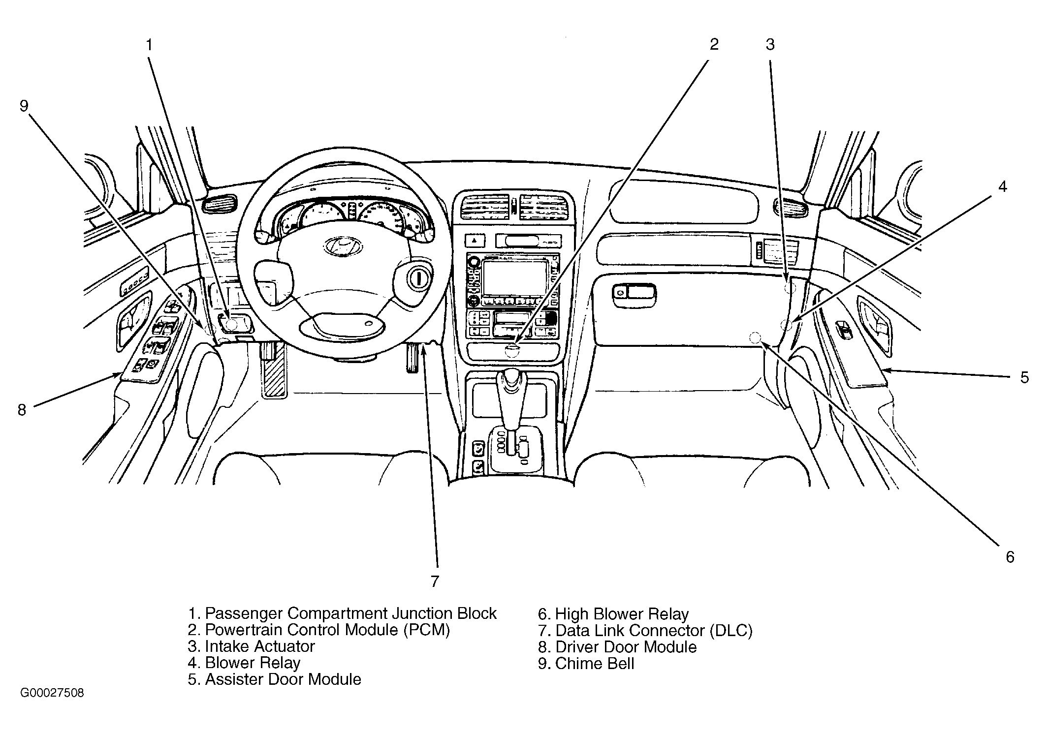 | Passenger Compartment Junction Block | Behind left end of dash. See Figure . |