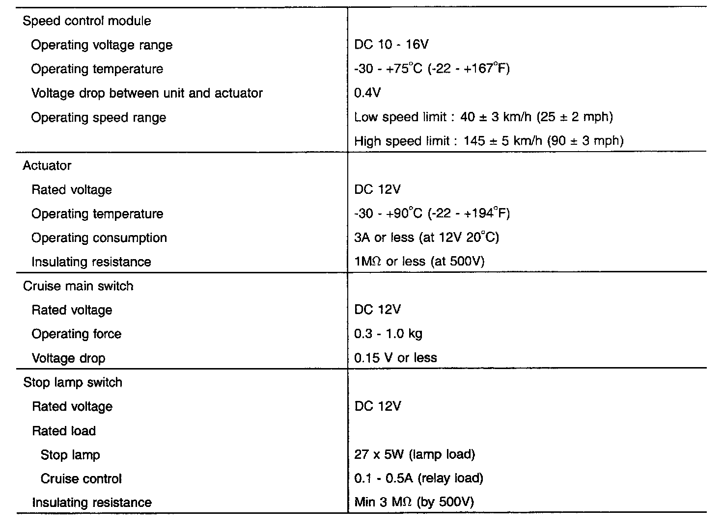 Cruise Control: Specifications