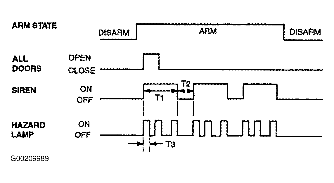 - Disarmed after 30 sec when the ignition switch is turned on while the alarm is sounding. See Fig 6 .