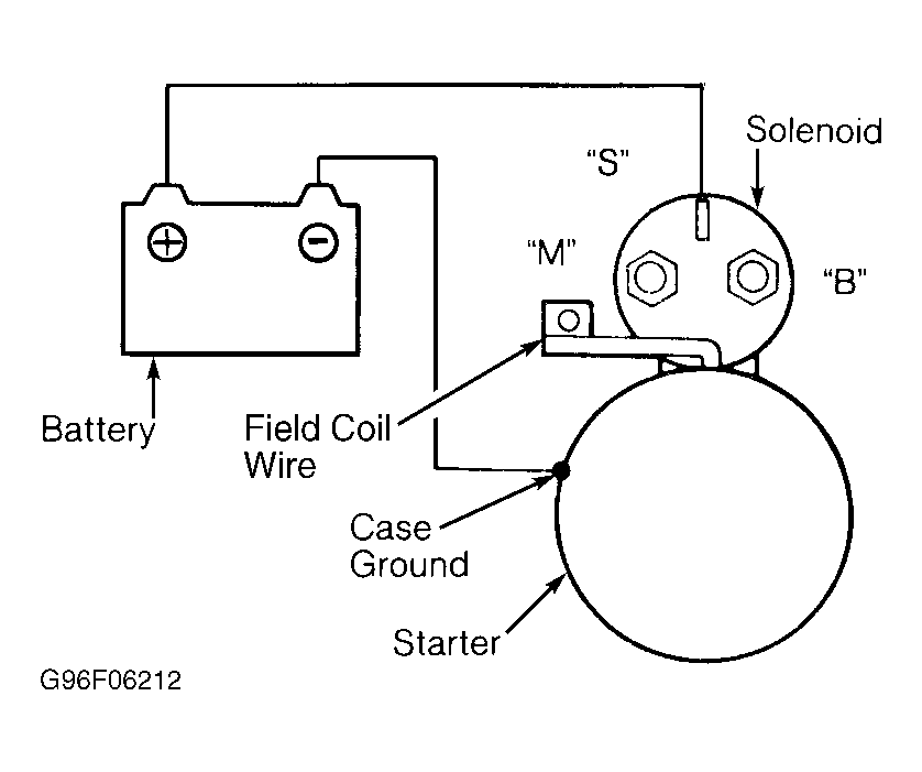 - Disconnect field coil wire from terminal "M" of solenoid.