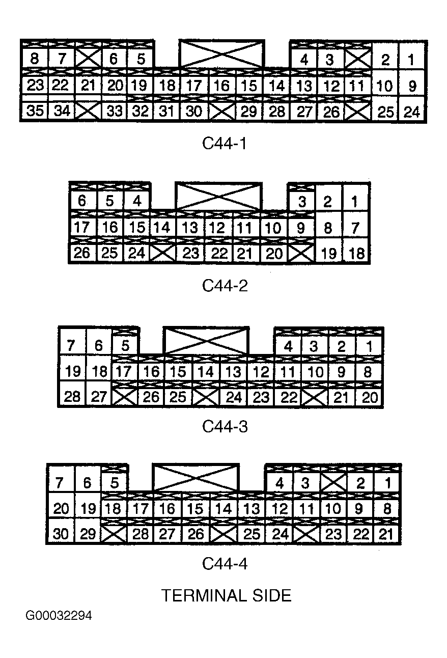 2. Connect voltmeter negative lead to chassis ground. Connect positive lead to each ECM ground terminal. See ECM GROUND TERMINAL IDENTIFICATION  table. With engine running, voltmeter should indicate less than one volt. If voltmeter indicates greater than one volt, check for open, corrosion or loose connection in ground circuit.