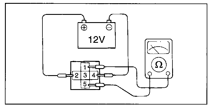 1. Check Continuity of relay contacts between terminals 5 (+) and 1 (-).