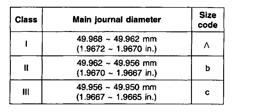 CRANKSHAFT MAIN JOURNAL DIAMETER: