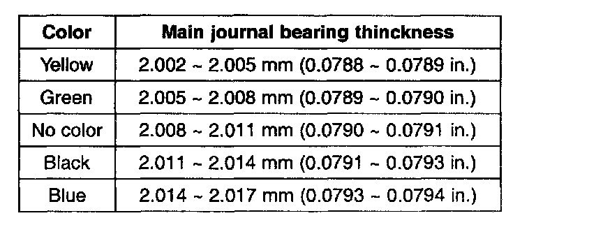 MAIN JOURNAL BEARING THICKNESS / NO 1 2 4 5 (MAIN BEARING):