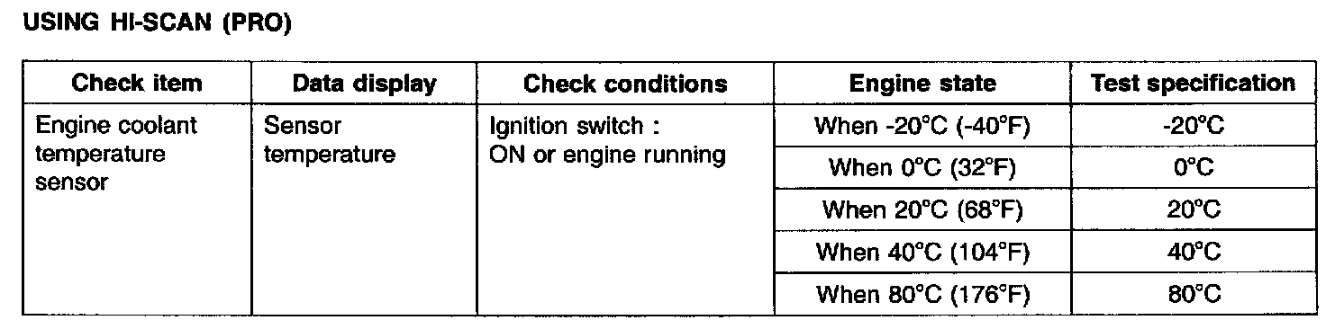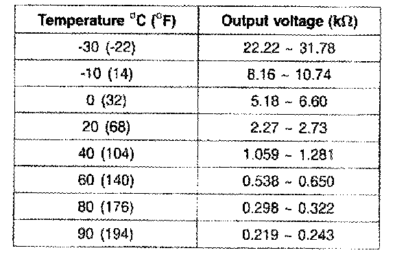 2. With the temperature sensing portion of the engine coolant temperature sensor immersed in hot water check resistance.