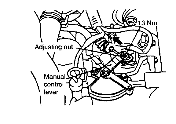 2. Loosen the control cable to the manual control lever coupling nut to free the cable and lever.
