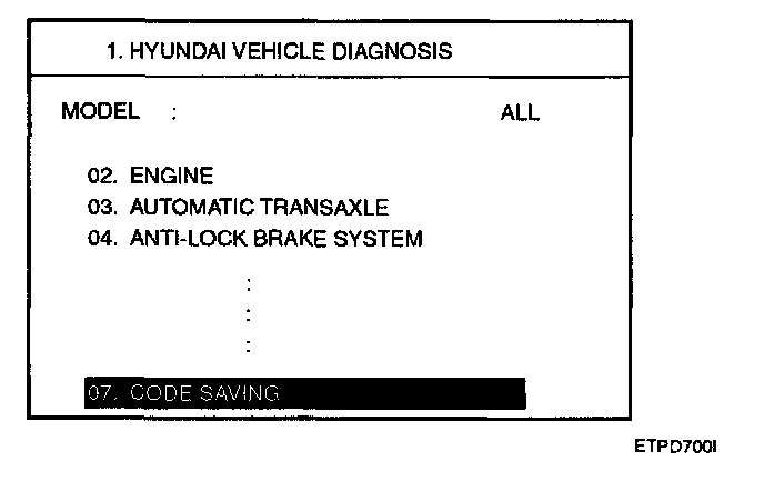 4. After selecting "CODE SAVING" menu, button "ENTER" key, then the screen will be shown as below.