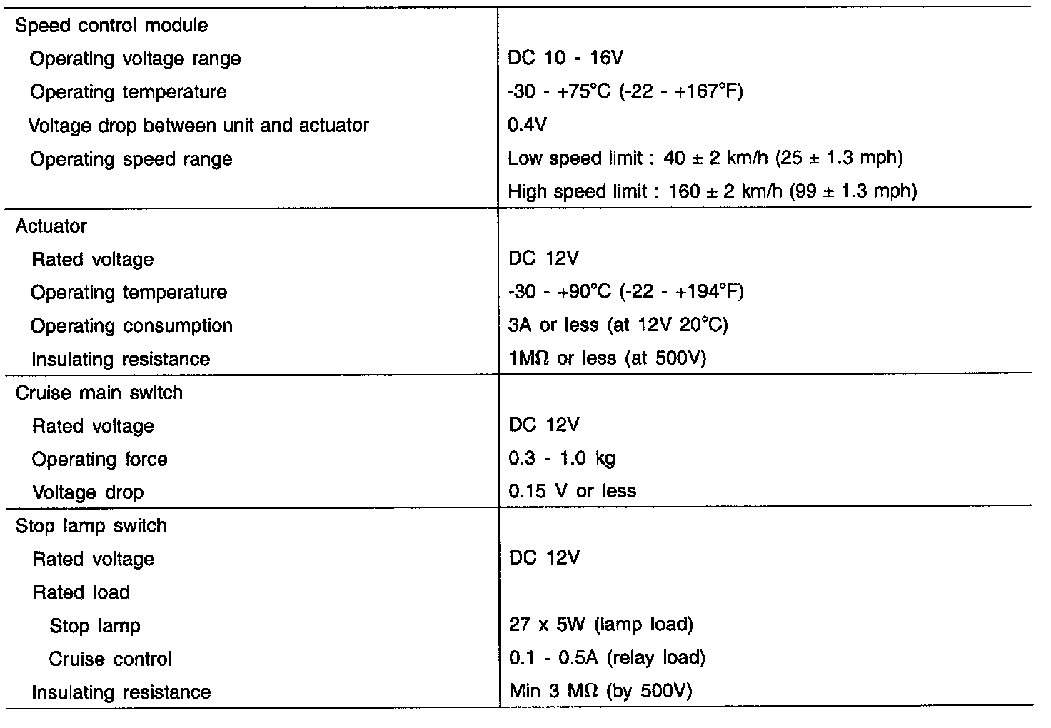 Cruise Control: Specifications
