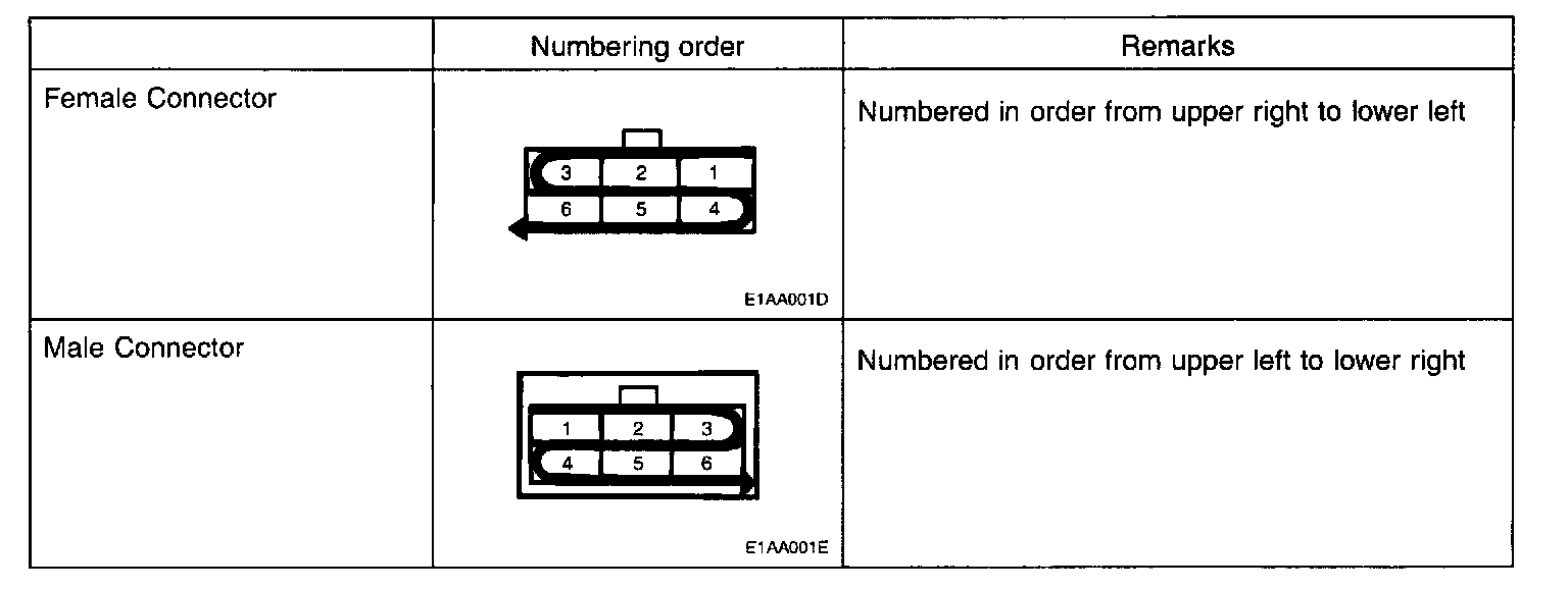 : Unless otherwise stated, all connector views are from the terminal side of the connector.