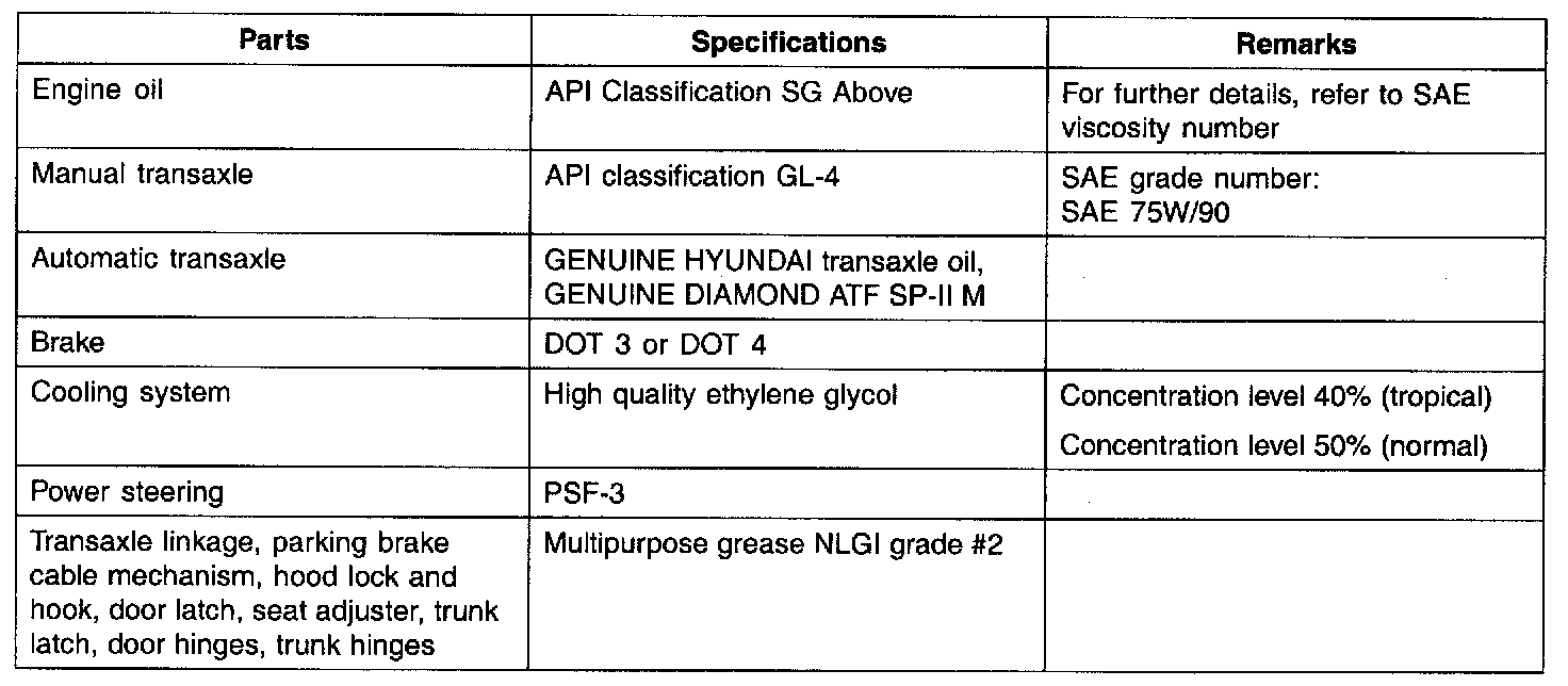 General Fluid Specifications