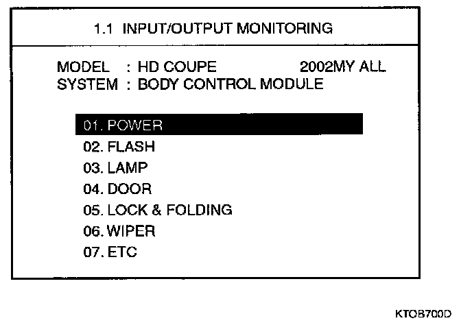 1. Select "01.POWER" and press [ENTER] Then the following screen will be displayed.