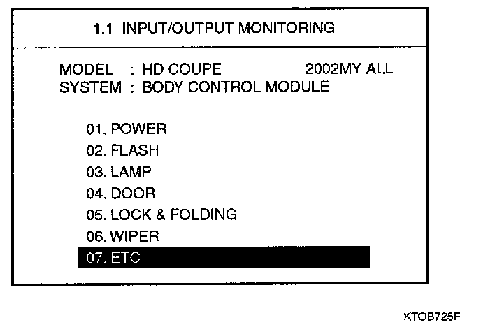 2. Select "07 ETC" and press [ENTER]. Then, the following screen will be displayed.