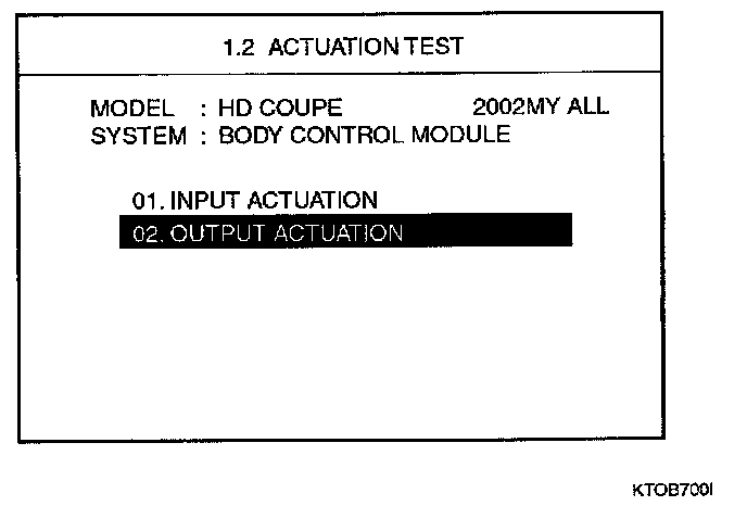 Select "02 OUTPUT ACTUATION" and press [ENTER].