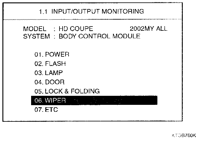 Select "06.WIPER" and press [ENTER]. Then, the following screen will be displayed.