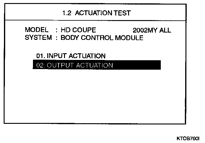 2. Select "02.0UTPUT ACTUATION" and press [ENTER].