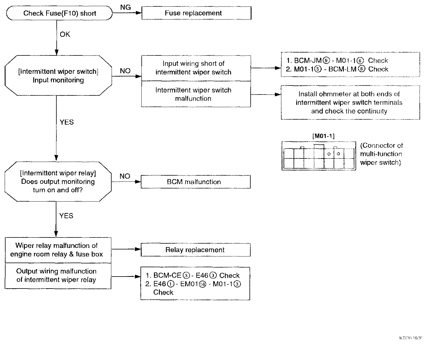 1. If parking signal is inputted when wipe INT or OFF is operating, wiper stops judging wiper motor overload.